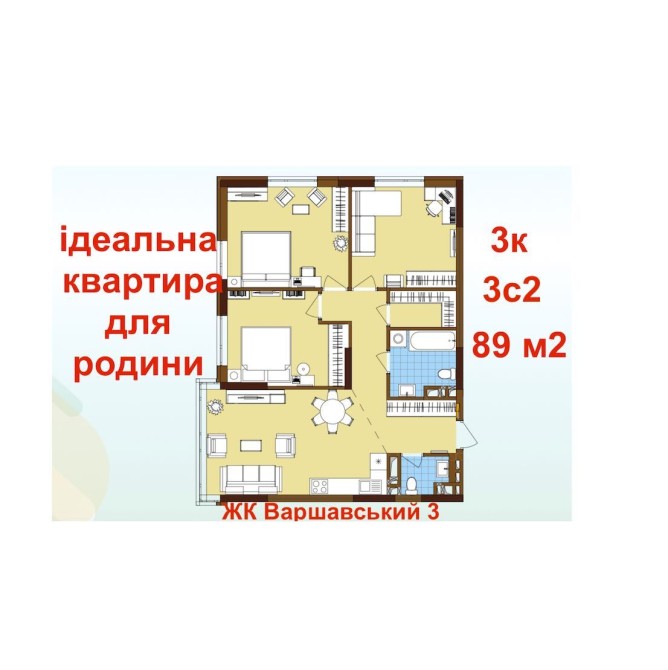 Без% Варшавський 3 Генератор Продаж 3к квартира 89 м2! Новобудова 2026 - фото 3