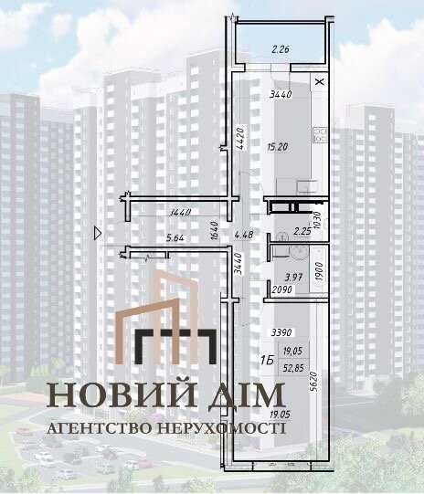 Продаж 1к квартири С БАЛКОНОМ 51,85м2 по переуступці.