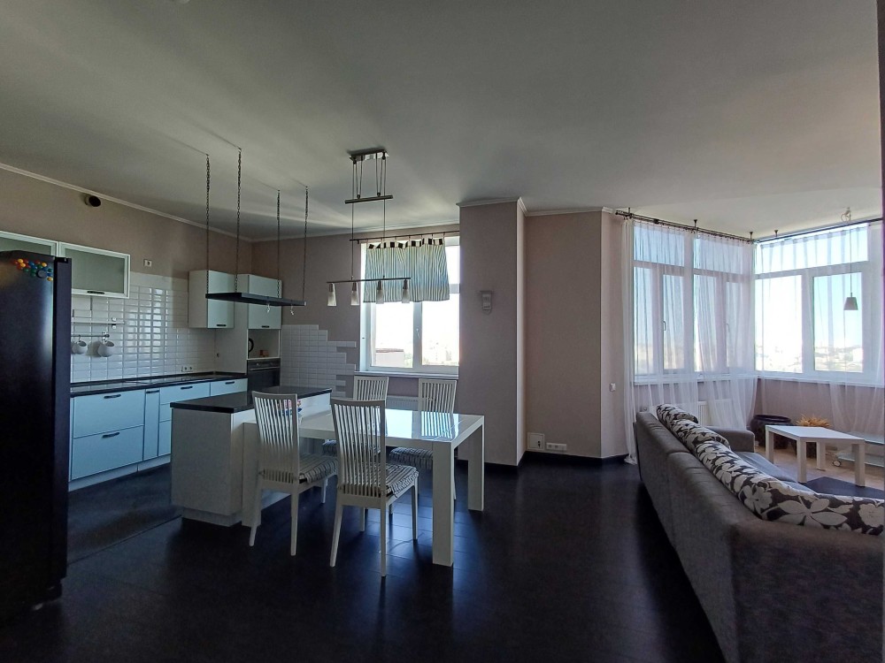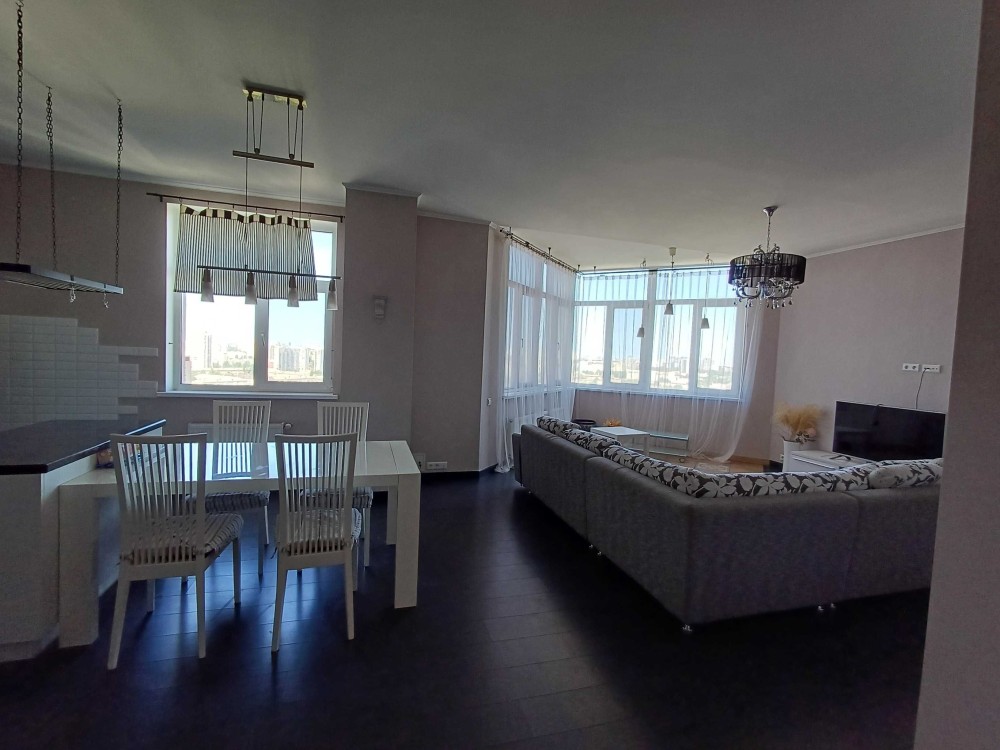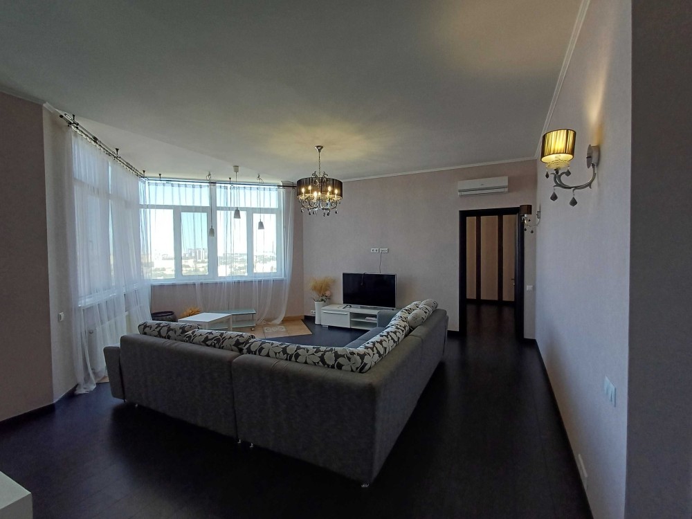 Ця квартира є ідеальним варіантом для сім'ї. Загальна площа 110 м2 22/25 поверхового будинку. Ліфти завжди працюють. Простора кухня-вітальня, два сан.вузла, дитяча кімната та хазяйська спальня з гардеробом. Чудова квартира повністю укомплектована усіма необхідним для комфортного проживання : меблями та сучасною технікою відомих європейських виробників. Вбудована варильна поверхня та духова шафа електоролюкс, холодильник Side-by-side, два телевізори, кондиціонер, бойлер, пральна машина, посудомийна машина, електро чайник, гардеробна кімната, обідішній стіл дерев,яний з стільцями, двоспальне ліжко, м,який куточок, дві полуторні ліжка, дві шафи-купе та багато іншого. Лічильники на все: воду, опалення, двозонний лічильник на електрику. Платите лише за те що споживаєте.