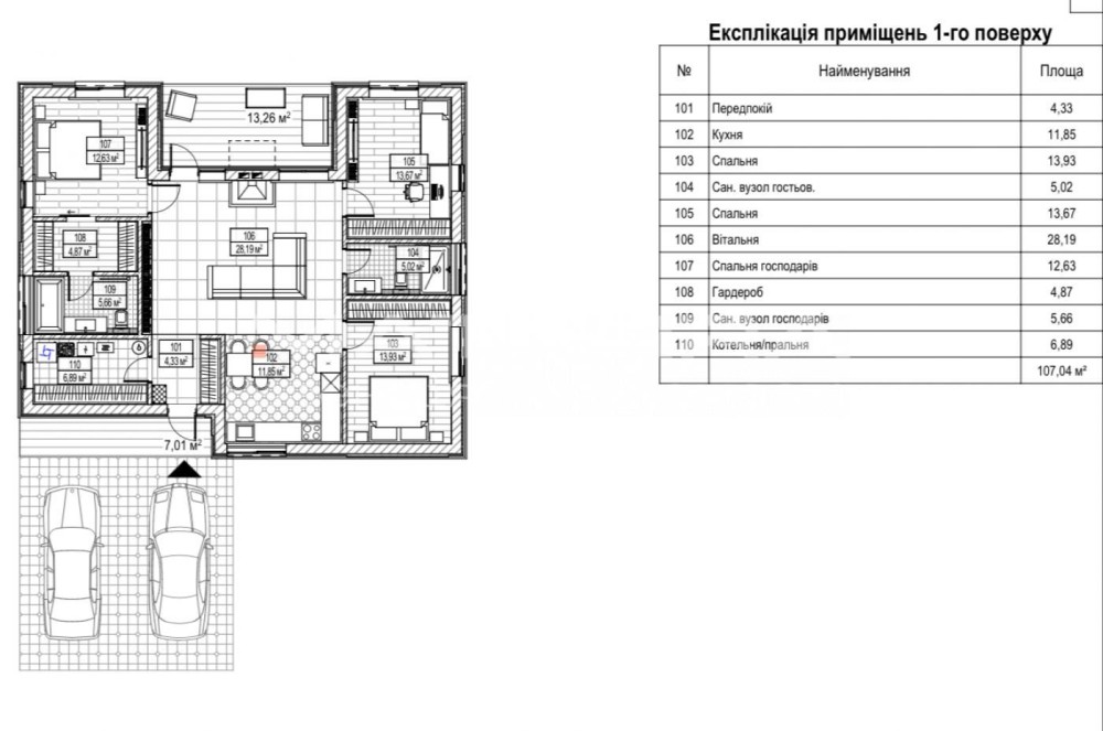 Загальна площа будинку -105м2