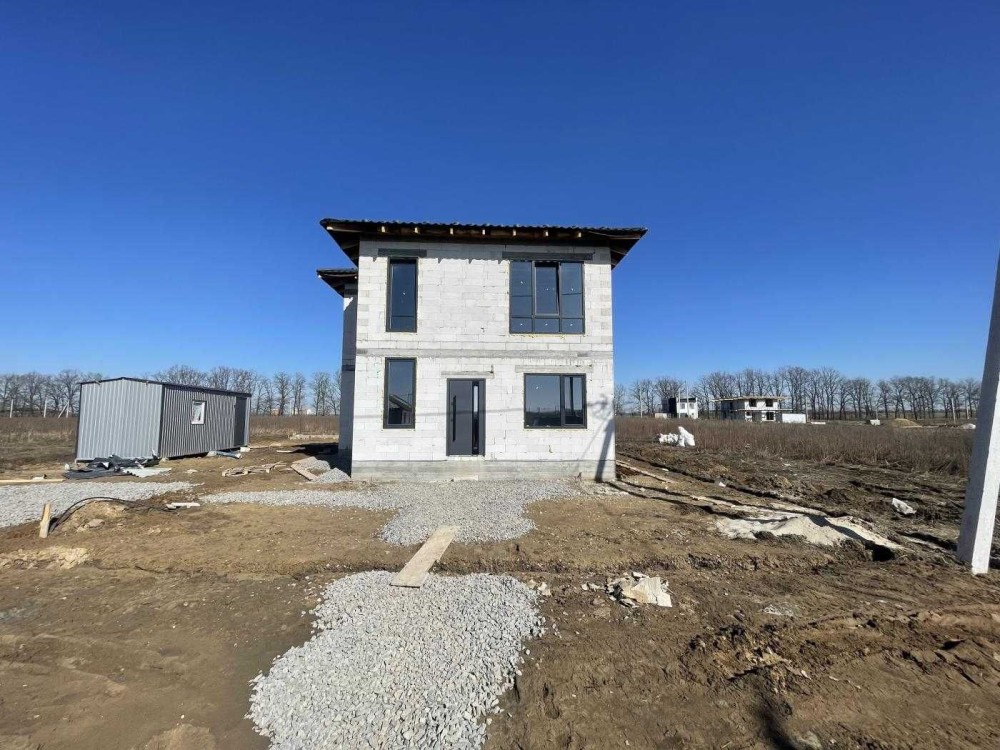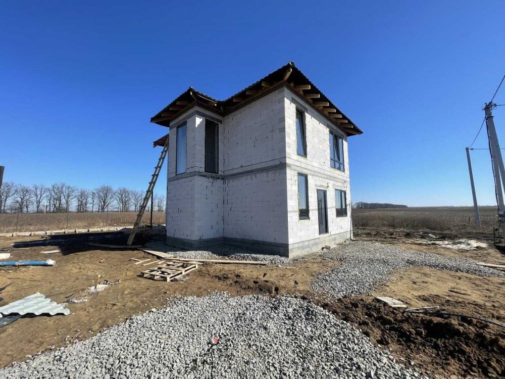 Продається сучасний двоповерховий будинок площею 120 м² на земельній ділянці 5.5 сот. Будинок знаходиться на етапі будівництва, вже наступного тижня починаються роботи по фасаду. Є можливість розтермінування.