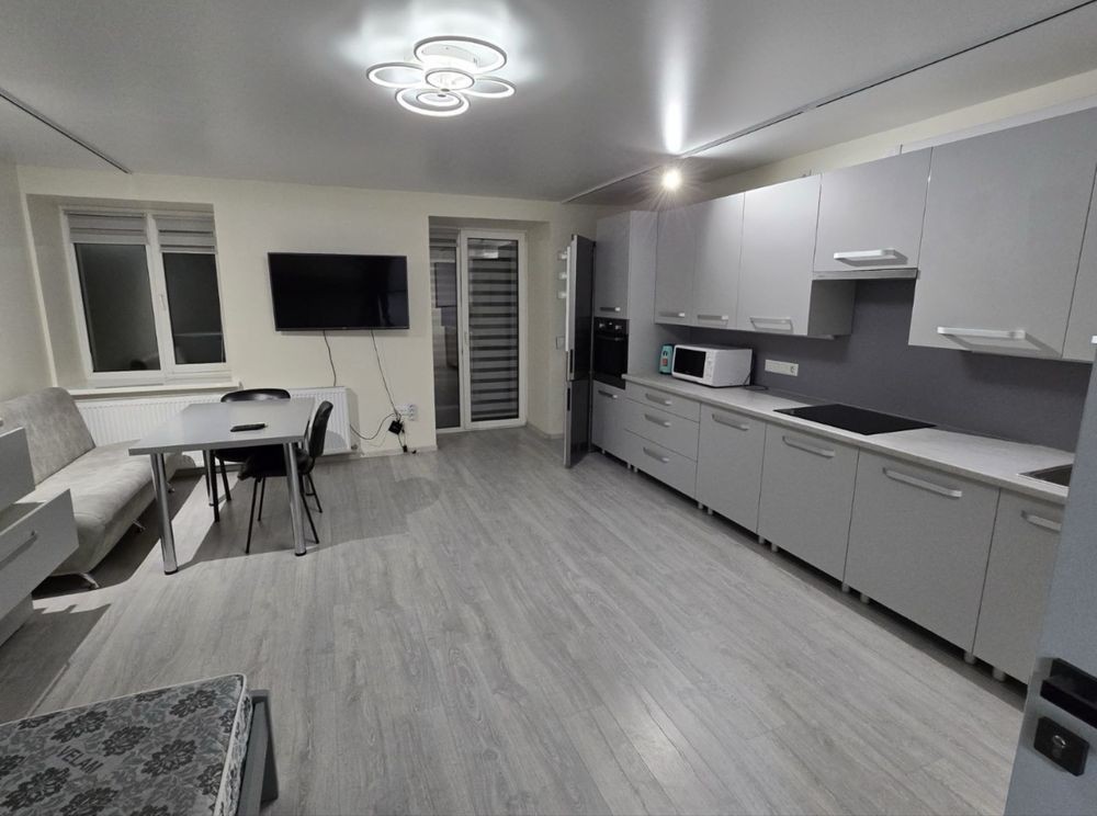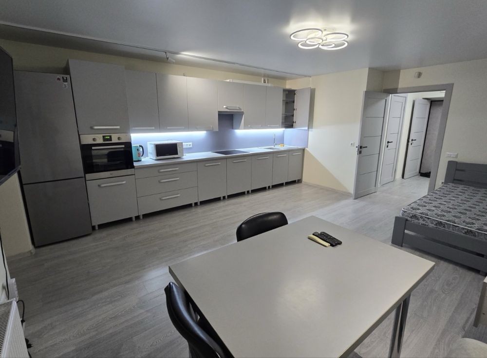 Студія, квартира містить всі необхідні для проживання меблі та техніку