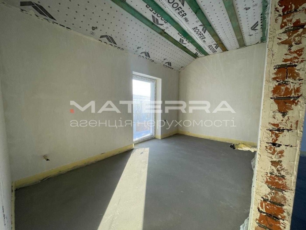 зроблена тепла підлога, лазерна стяжка, електрика, штукатурка, перестінки та утеплення стелі. Можна одразу заходити на фінішні роботи й робити ремонт “під себе”.