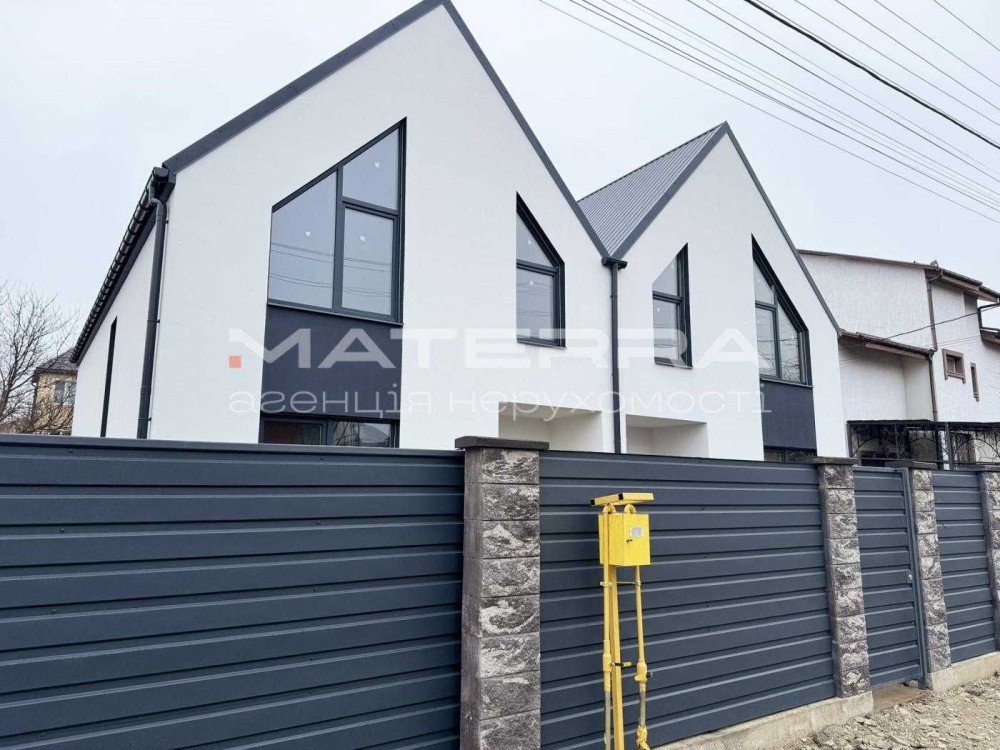 Фасад будинку виконаний у мінімалістичному стилі, відповідає сучасним архітектурним трендам та має стильний і практичний вигляд.
