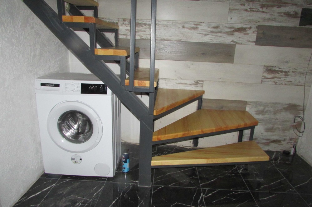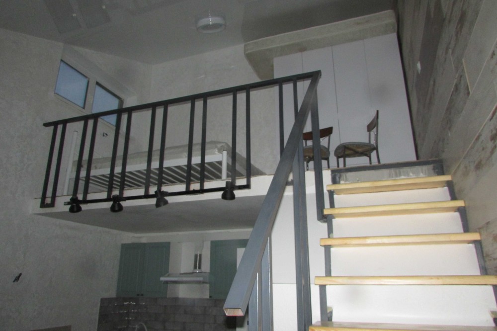 на першому поверсі: кухня - гостинна, санвузол.