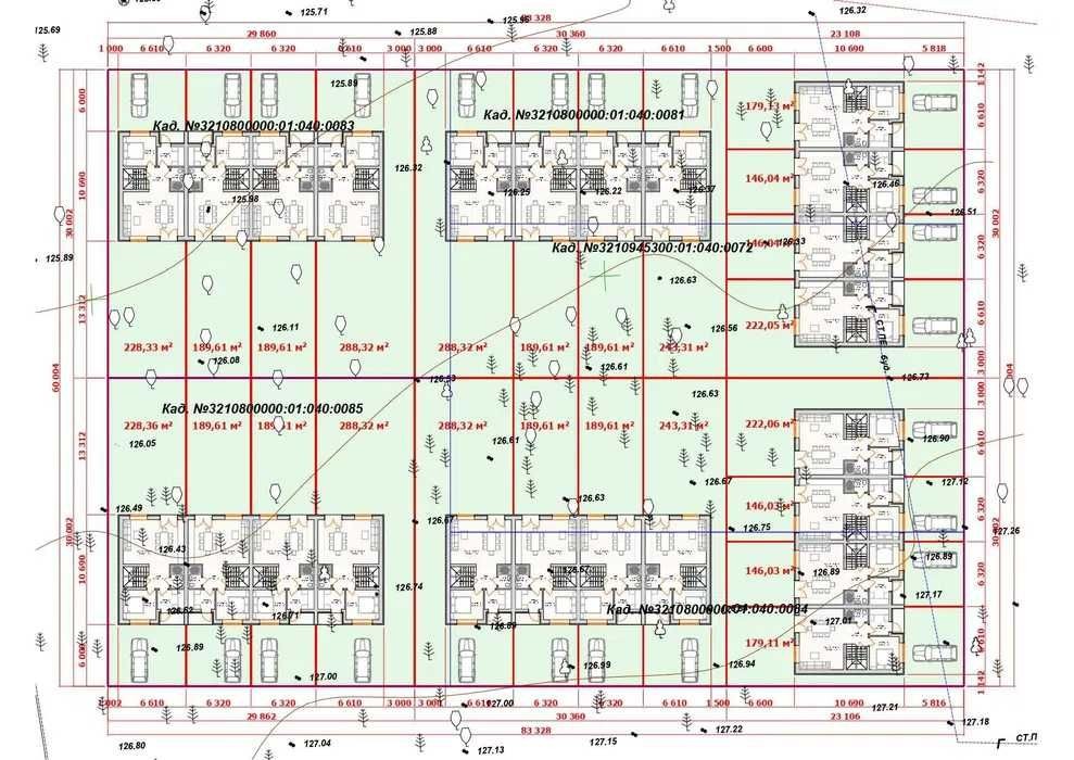Комплекс передбачає 24 тауни з земельними ділянками від - 146 м.кв до - 288 м.кв.