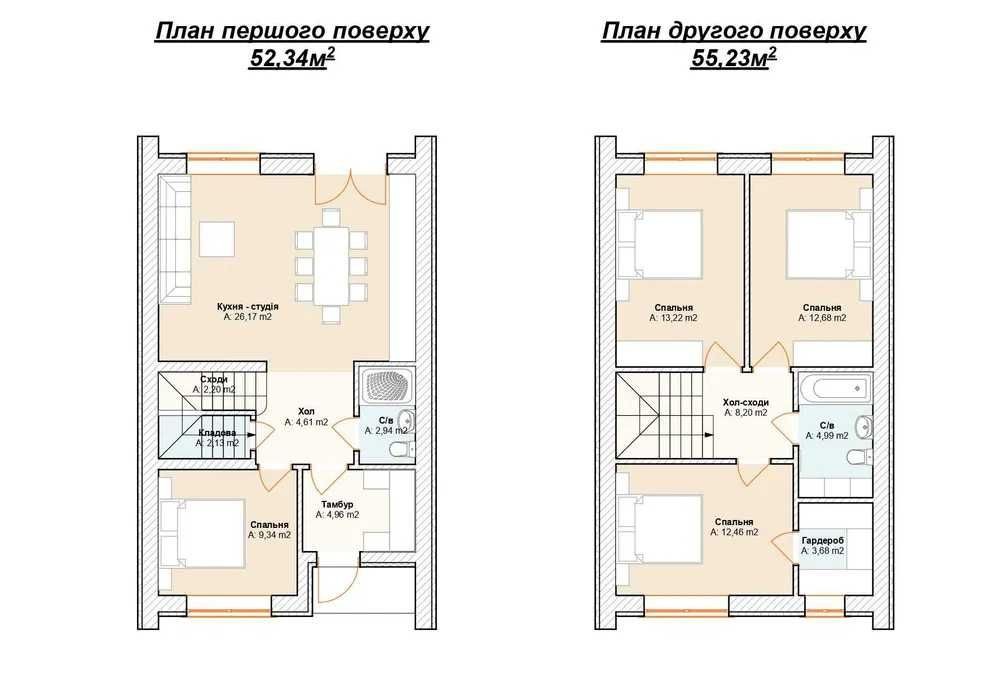 Загальна площа одного тауна - 107.57 м.кв.