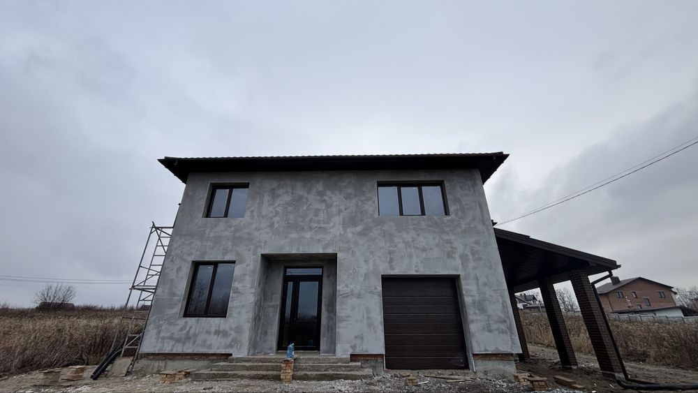 Будинок складається з 2х поверхів, гаражу на 1 авто, навісу на 1 авто та тераси.