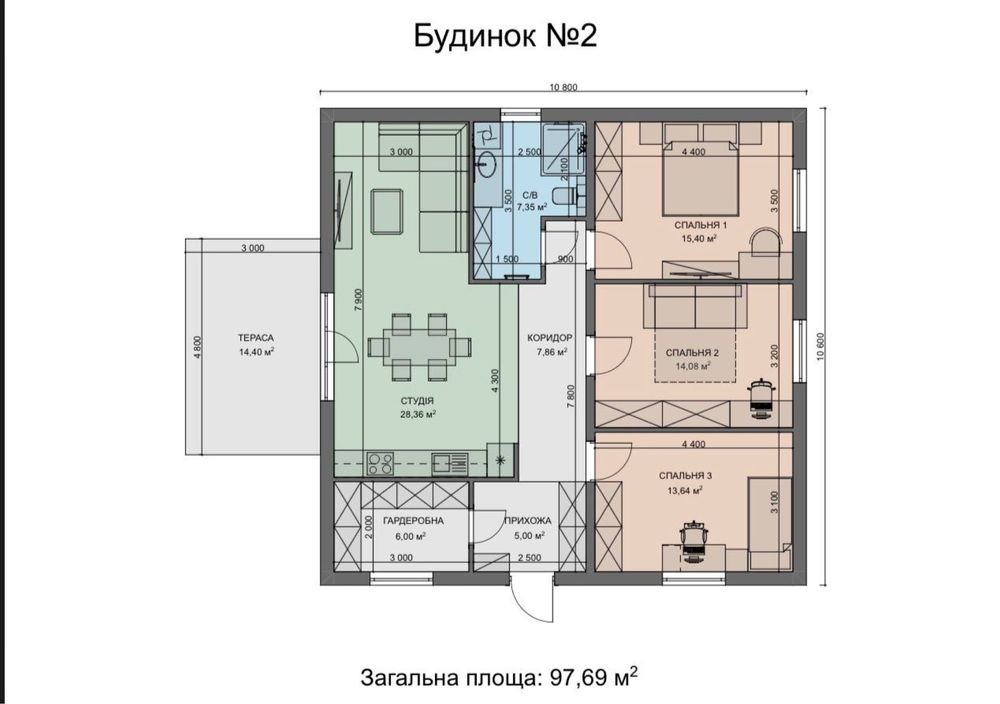 • Общая площадь 100 м2