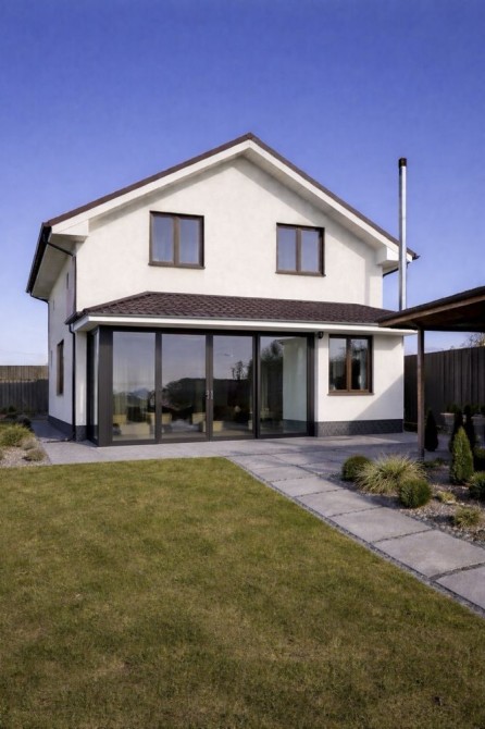 • без фасадного оздоблення — можливість обрати колір і фактуру на свій смак( варіант можливого оздоблення запропоновано в оголошенні )