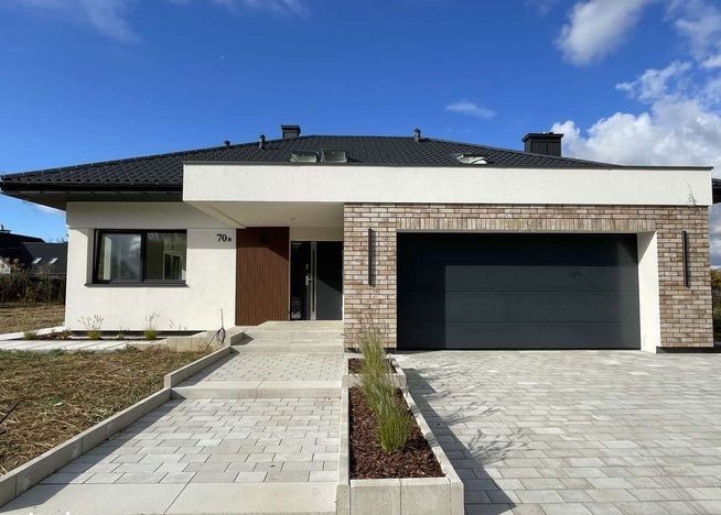 Будинок має сучасний та привабливий зовнішній вигляд. Архітектура виконана у сучасному стилі, який виглядає естетично, акуратно та гармонійно. Поєднання кольорів фасаду, прості та водночас стильні форми будівлі, а також великі вікна створюють сучасний образ будинку, який виглядає дорого та привабливо.