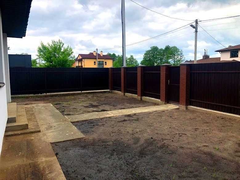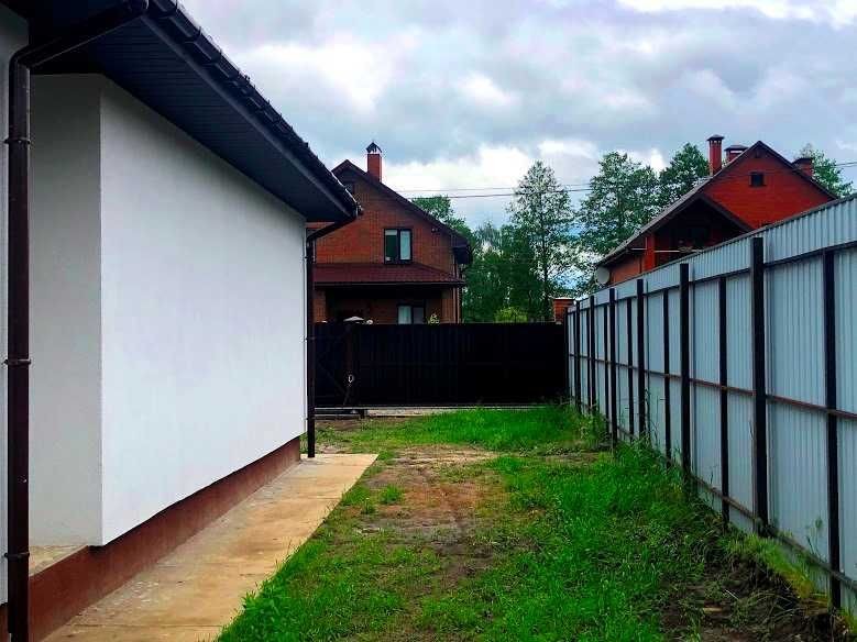 Продаж будинку в с. Гнідин (Бориспільського р-ну). Будинок, площею 140 кв.м. (Кухня-вітальня з виходом на терасу, 3 спальні, комора, 2 санвузли, топкова, Є можливість зробити другий поверх. Ділянка 8 соток, прямокутної форми, обгороджена парканом. Відкатні ворота. У будинку проведені всі комунікації (електрика 17кв, свердловина, септик). Використано всі якісні матеріали будівлі. Елітна вулиця, тільки нові котеджі. Шикарний вид на сосновий ліс, поруч річка.