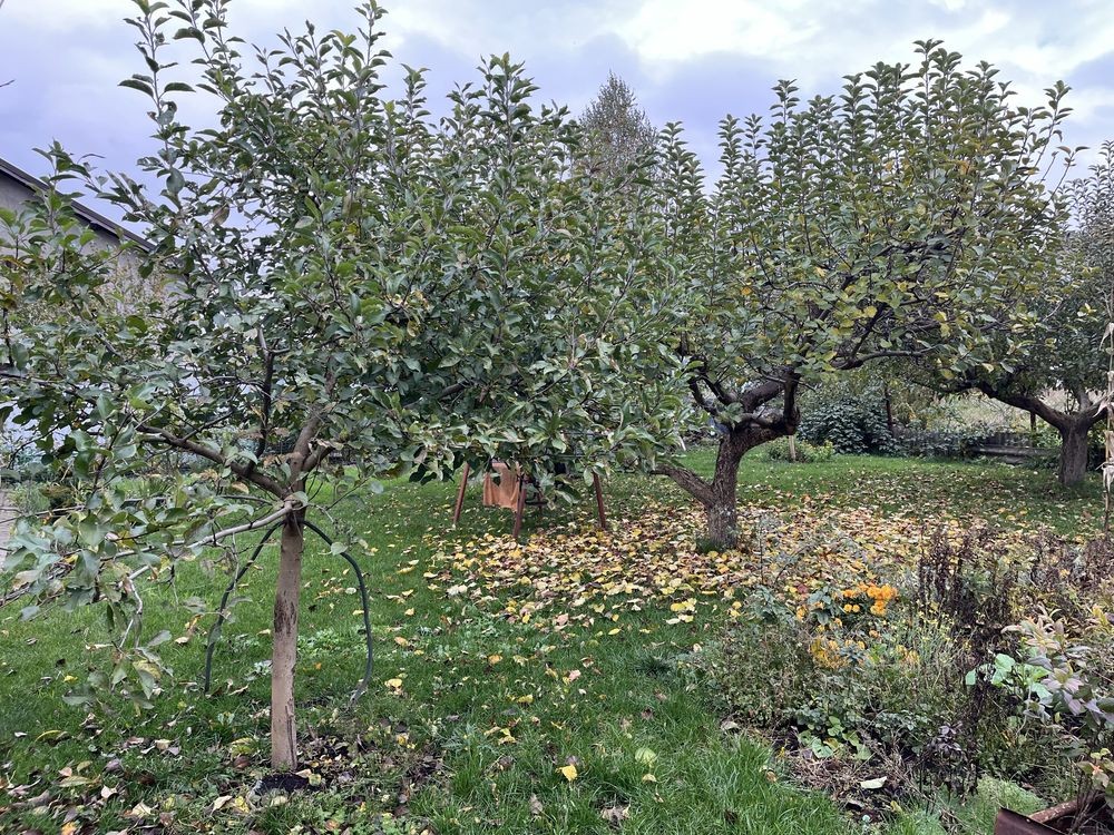 У дворі посаджені фруктові дерева.