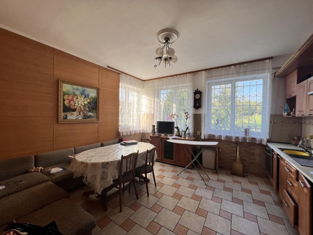 Продається цегляний утеплений будинок у центрі села Трушки. Будинок з якісним косметичним ремонтом, перекриття між поверхами — залізобетон. Є гараж із виходом у просторий підвал, а з лоджії — вихід на горище (холодне, на всю площу). У будинку два санвузли: на першому поверсі з душем, на другому — з ванною. Встановлений кондиціонер, супутникове телебачення, оптоволоконний інтернет. Вода — зі свердловини 25 м, каналізація — септик. Опалення: двоконтурний газовий котел + твердопаливний у окремій котельні. Підключено 30 кВт (3 фази). Є діюча сонячна електростанція на 10 кВт (зелений тариф), техумови на 30 кВт, інвертор, безперебійник, акумулятори на 10 кВт⋅год. На території — окремий господарський блок: літня кухня з підведеними водою та газом, сауна з басейном і кімнатою відпочинку, дровник, сарай, кладова для інвентарю. Також є затишна бесідка, вольєр для тварин. Земельна ділянка 15 соток, огороджена та доглянута. До зупинок і магазинів — 5 хвилин пішки. Ціна — 150 000 $, торг доречний. Телефонуйте — перегляд у зручний для вас час .