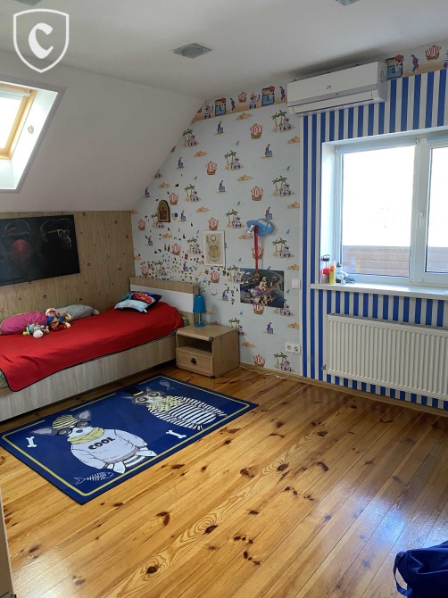 Пропонується до продажу комфортний та просторий будинок площею 210 кв.м, розташований на ділянці 8 сот у селі Лебедівка, всього 20 км від Києва.