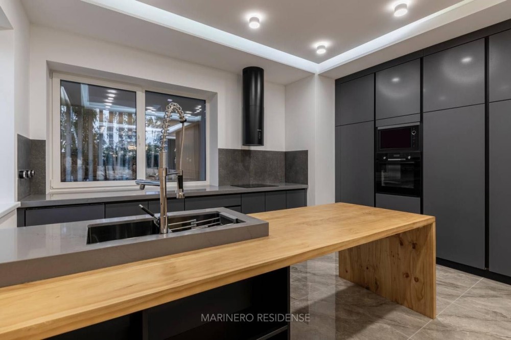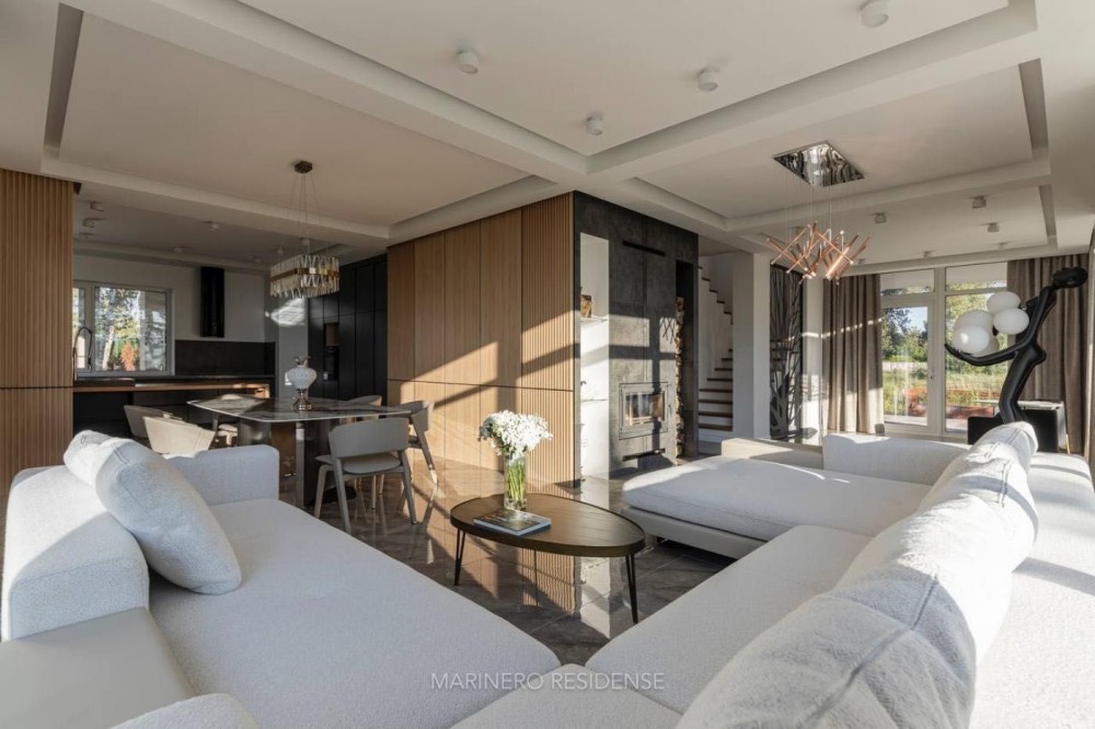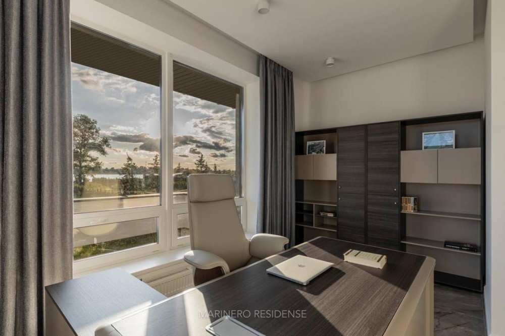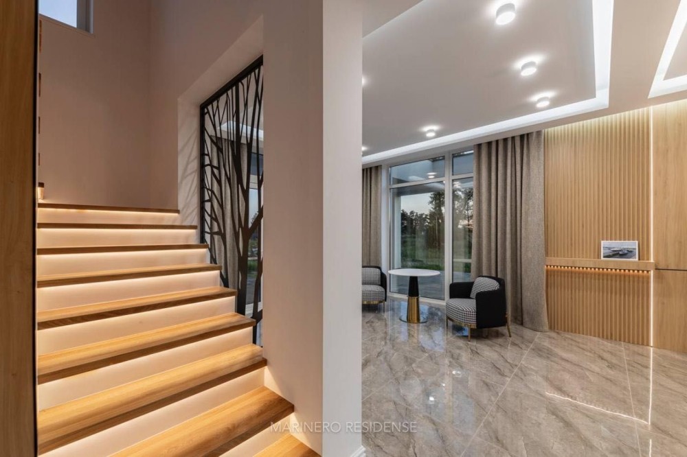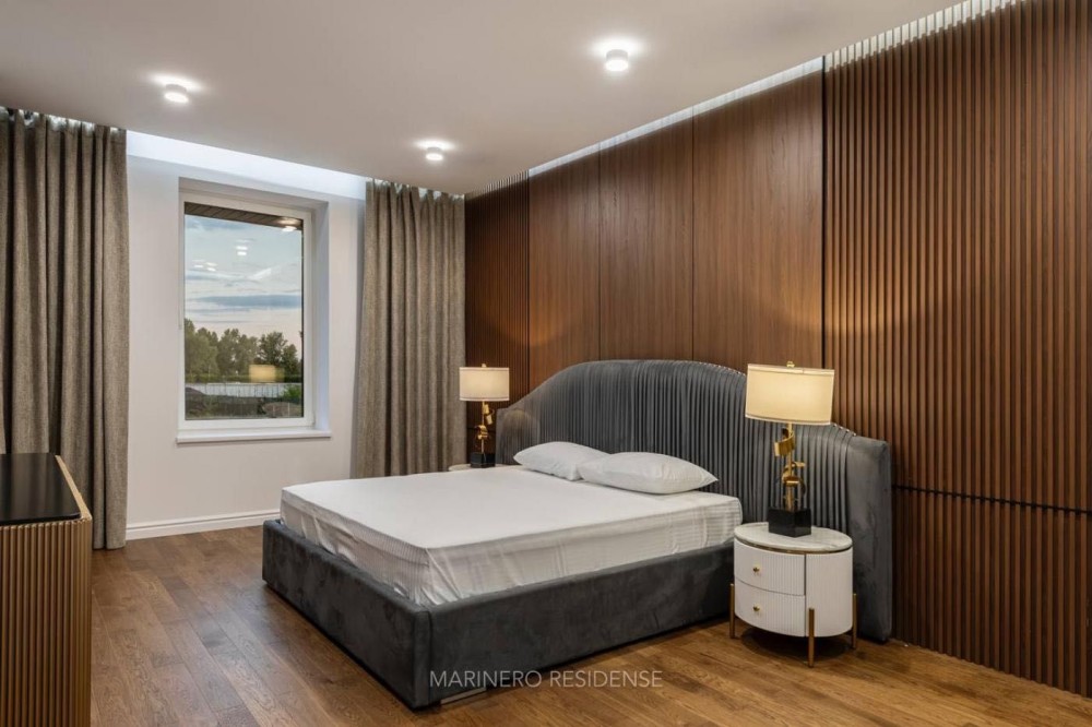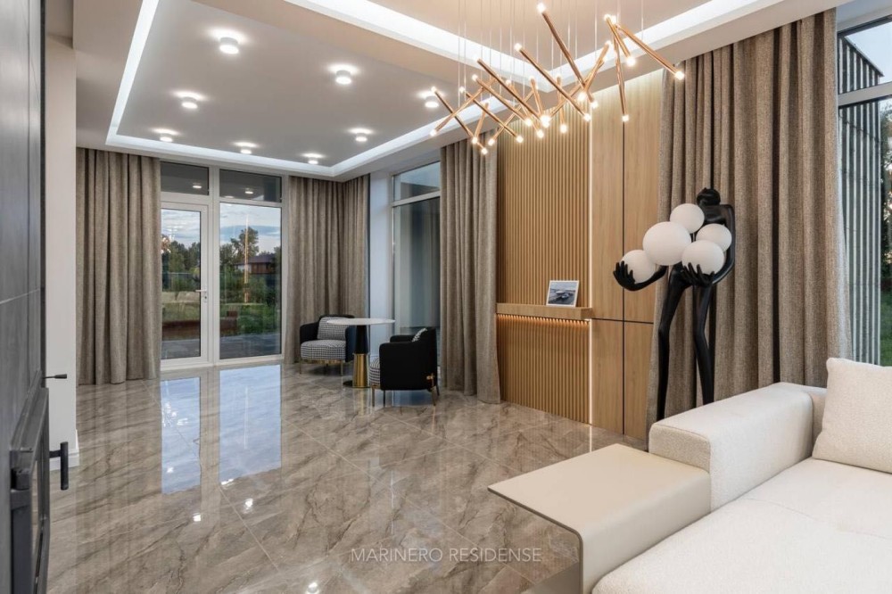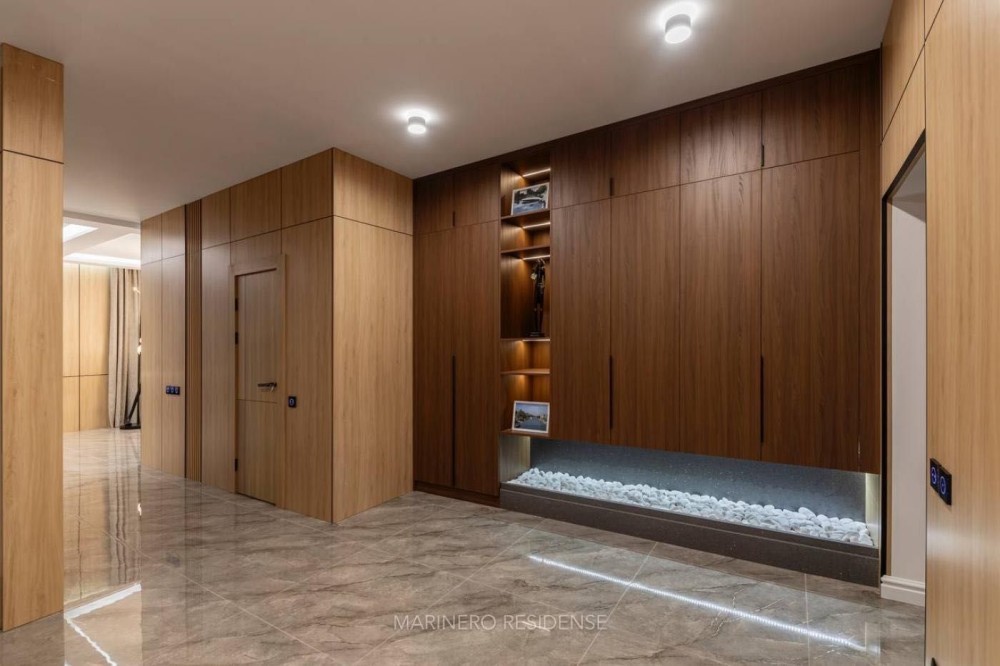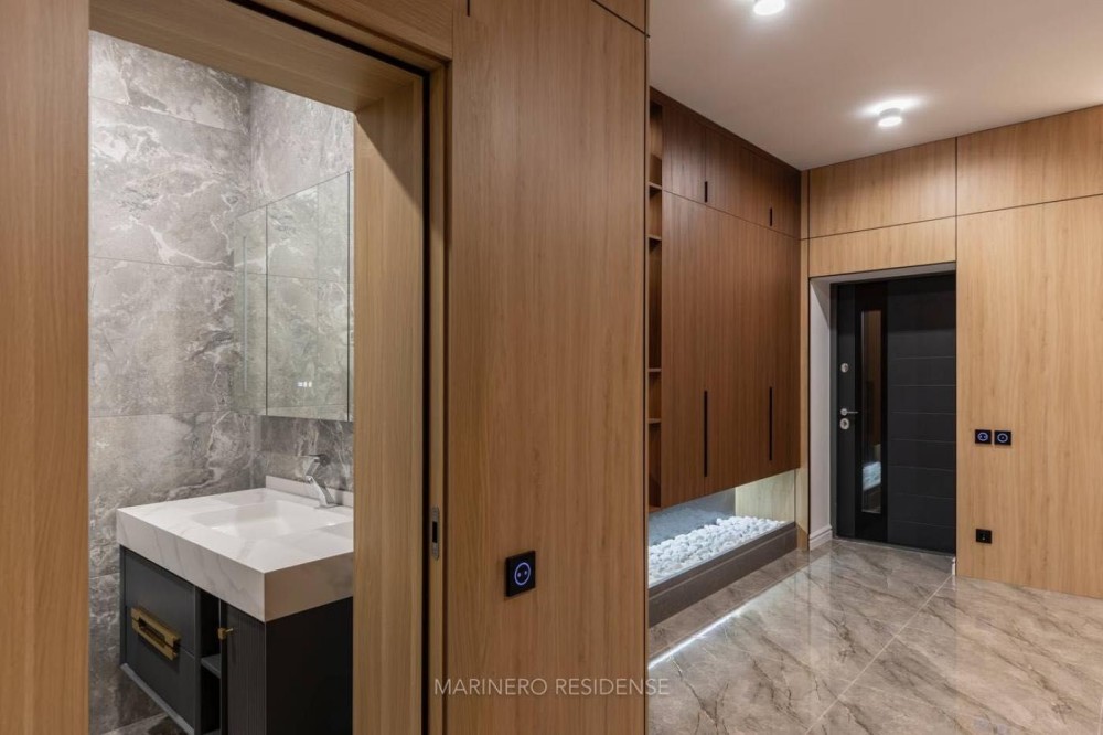 Дизайнерський ремонт 2024 року виконаний з використанням дорогих меблів, декору та побутової техніки. В оздобленні застосовувалися тільки ексклюзивні матеріали — натуральний камінь, метал, шкіра і дерево. Інтер'єр витриманий в яхтовому стилі, з цікавими рішеннями по освітленню.