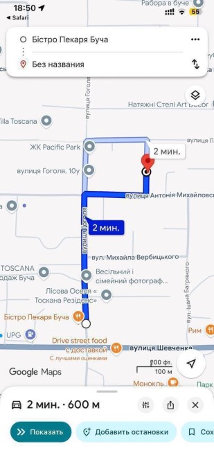 Локація Маліновського біля Бістро Пекаря