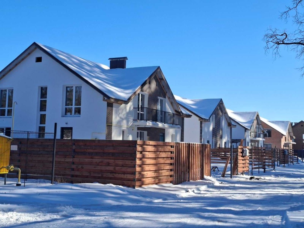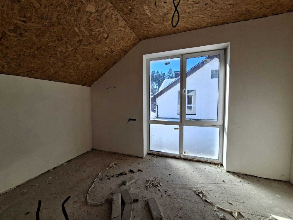 Продаж нового двоповерхового будинку - дуплексу в лісовій зоні недалеко від Дніпра загальною площею 103,6 м2. На першому поверсі - велика кухня-студія і санвузол, на другому - 3 кімнати і санвузол.