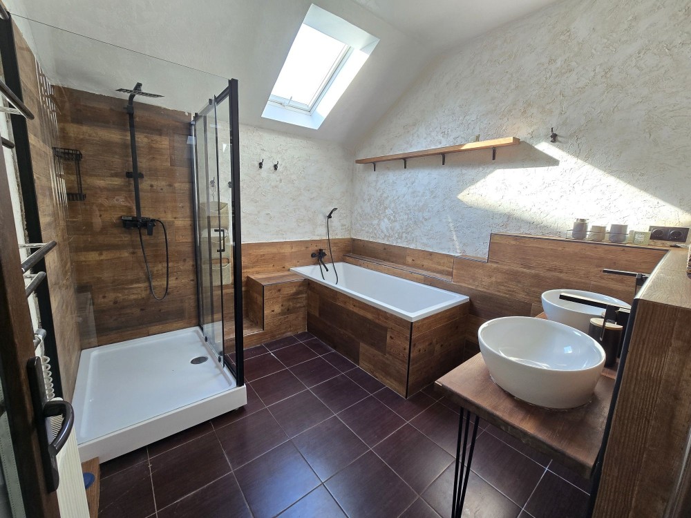 У бунку є всі зручності .На першому поверсі кухня та душ .На другому поверсі дві окремі кімнати .У дворі є альтанка та мангал.