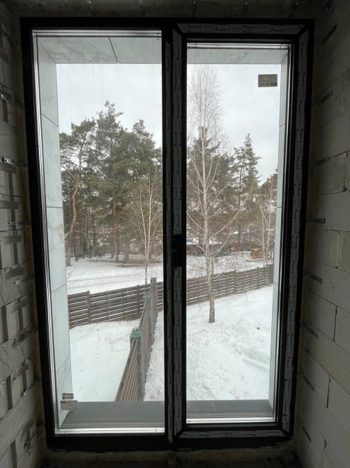 Будинок виконаний у сучасному мінімалістичному стилі з панорамними високоякісними вікнами та дверми.