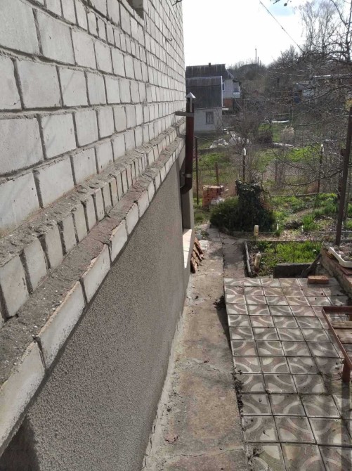 Пеноблок. Обкладено Цеглою.