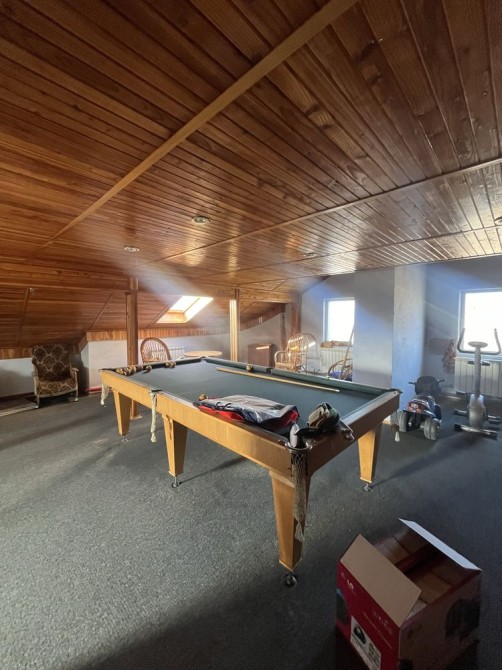 Продається просторий триповерховий будинок у [н]. Будинок утеплений зовні. Всередині п’ять кімнат, простора вітальня з каміном, гараж, сауна. Третій поверх облаштований під більярдну. На території є окреме приміщення, яке можна використати під магазин або інший вид комерційної діяльності.