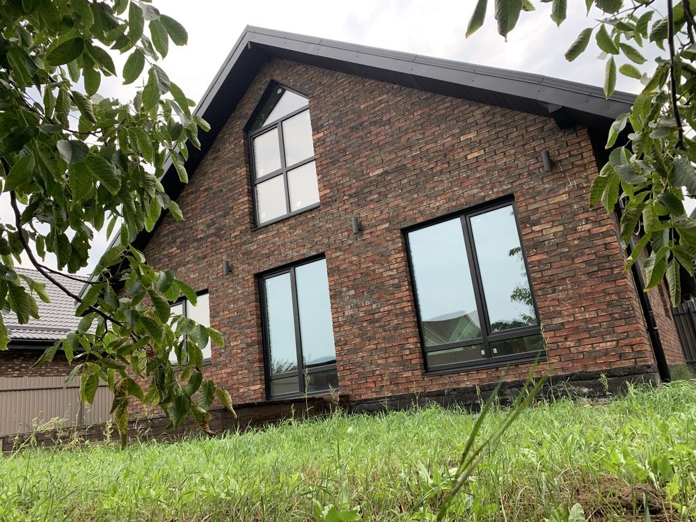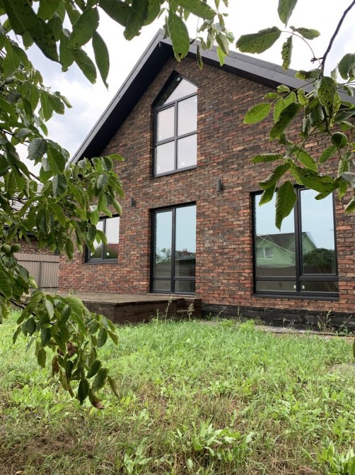 Будинок цегляний, у сучасному баварському стилі, загальна площа 100 м². Один поверх + мансардний поверх. Будинок у котеджному містечку в форматі дуплекс / таунхаус / триплекс).