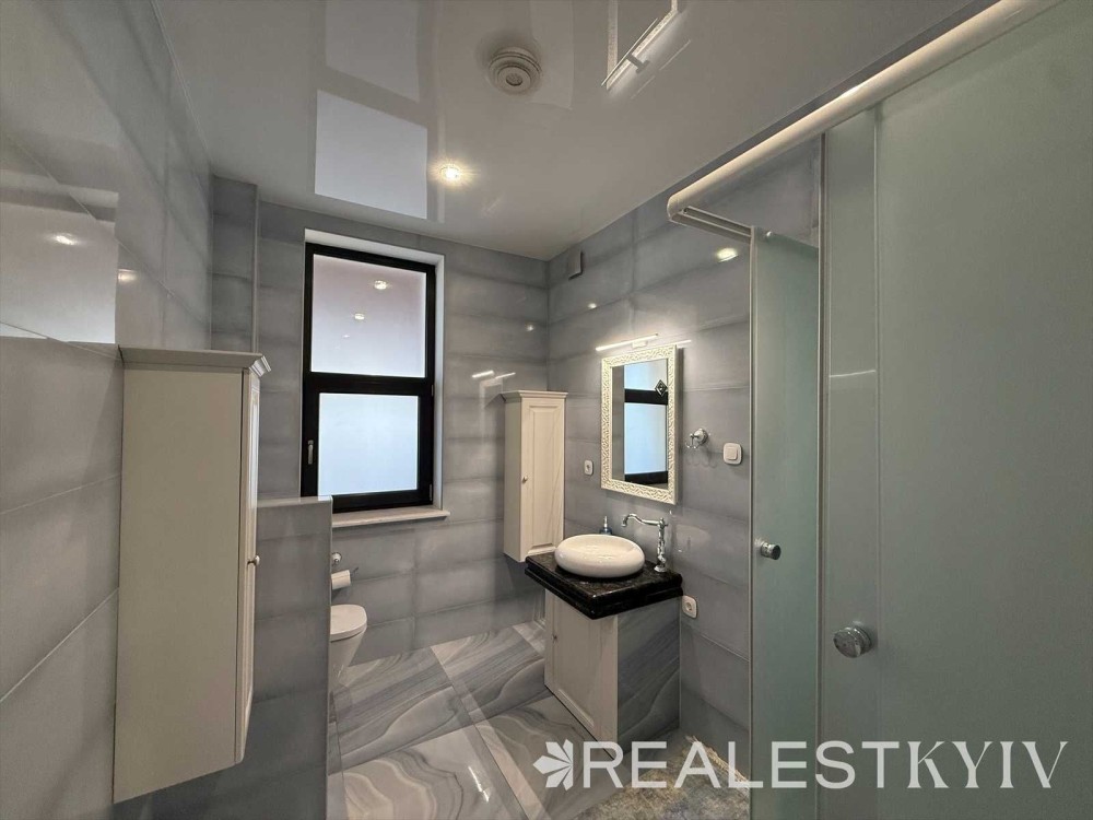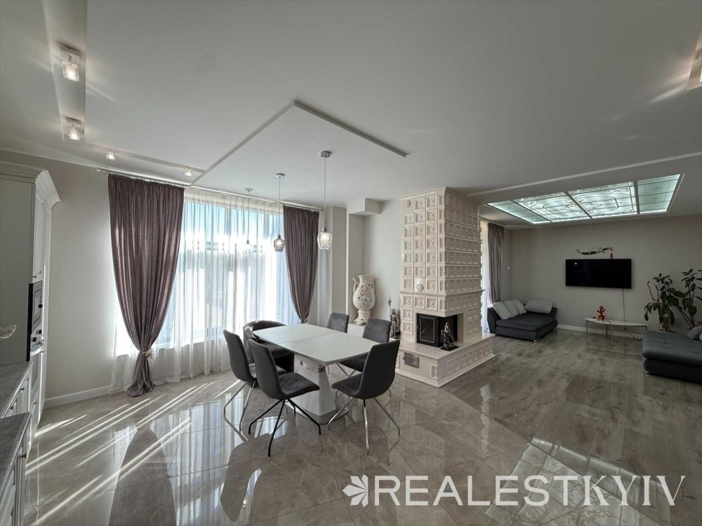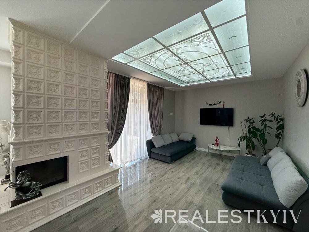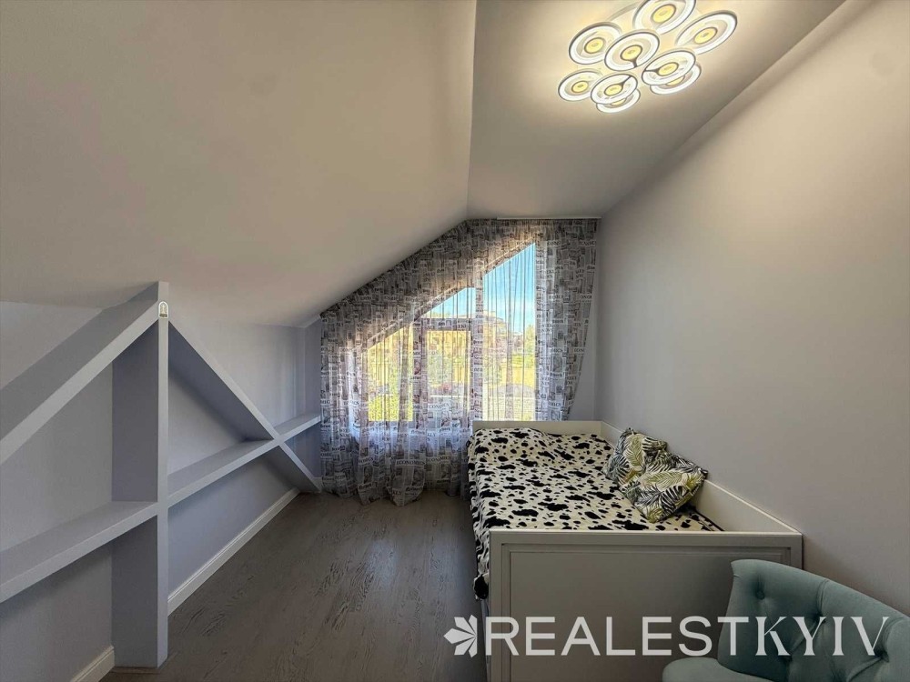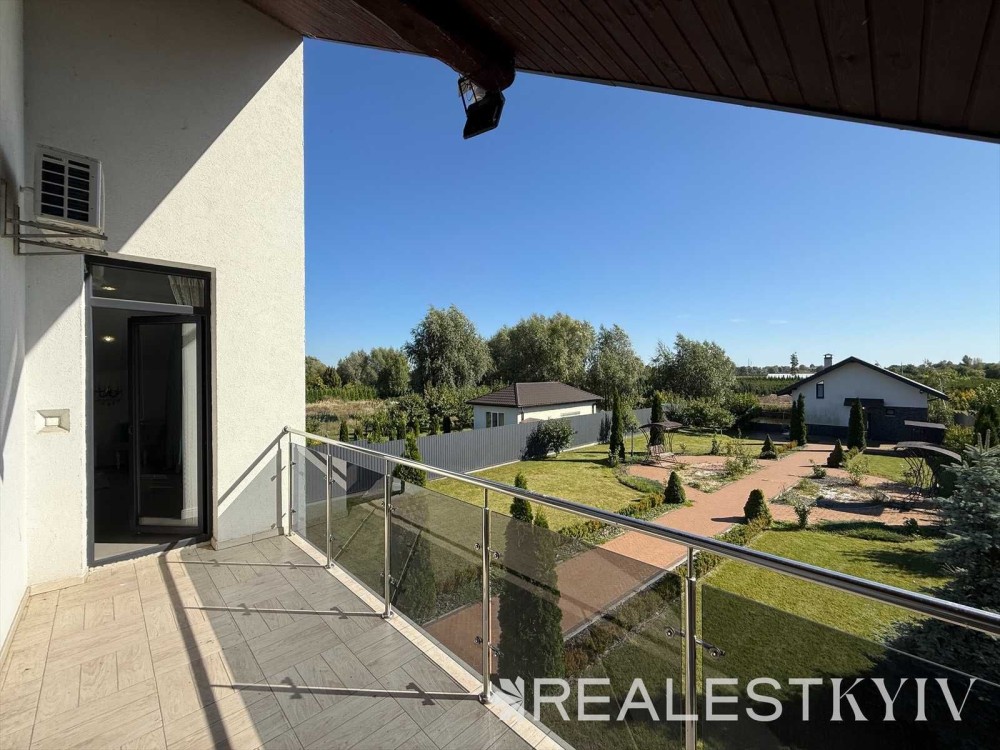 Продається новий індивідуальний житловий будинок котеджного типу загальною площею 131 м.кв. під чистове оздоблення, розташований в селі Крячки Фастівського (колишнього Васильківського) району Київської області на території нового житлового масиву із сучасною котеджною забудовою, що перебуває на відстані 20 км від станції метро «Теремки» міста Києва та за 1,5 км від міста Васильків. Житловий будинок складається з першого та мансардного поверхів. Загальна площа будинку із допоміжними спорудами становить 173,1 м.кв., з яких: а) площа будинку ‒ 131,0 м.кв., у тому числі житлова (основна) ‒ 94,1 м.кв. та допоміжна (підсобна) ‒ 39,6 м.кв.; б) площа тераси – 23,1 м.кв.; в) площа трьох балконів – 13,4 м.кв. (5,8 + 4,9 +2,7 м.кв.); площа ґанку – 5,6 м.кв. Котедж вміщує в собі 5 (п’ять) доволі просторих кімнат, 2 (два) санвузли (на кожному із поверхів), 1 (одне) технічне приміщення (котельня або бойлерна), 2 (два) коридори, 1 (одну) вітальню із виділеною еркером обідньою зоною, що поєднана з кухнею. Із вітальні є окремий вихід на велику терасу, з якої відкривається затишний вигляд на внутрішній двір. Кожна з трьох мансардних кімнат має окремий вихід на балкон. Над усією площею мансардного поверху розташоване містке горищне приміщення. Будинок приєднаний до електропостачання потужністю ‒ 12кВт (3 окремих фази). Має свердловину глибиною 55 метрів із фактичним дебітом (спроможною потужністю) ‒ 2,5 м.куб./год. та каналізацію септик з переливом на 11 м.куб. На усій площі першого (крім житлової кімнати) та у санвузлі мансардного поверхів встановлена система водяної теплої підлоги фірми «Rehau». По котеджу розведені: опалення, водопостачання і каналізація. В будинку передбачена можливість встановлення камінної топки, а також приєднання котеджу до газорозподільної мережі та всесвітньої мережі Інтернет. Індивідуальний житловий будинок розташований на земельній ділянці площею 0,075га з цільовим призначенням – (02.01) для будівництва і обслуговування житлового будинку, господарських будівель і споруд (присадибна ділянка). Під житловою забудовою перебуває 0,0115га земельної ділянки, решта 0,0635га займає просторий двір. Кадастровий номер земельної ділянки: 3221487004:03:006:0328. Земельна ділянка огороджена парканом із монолітного фундаменту, що опорядковане металевим штахетом із обох боків та металевим профілем з тильної та фасадної сторін. Заїзд у двір має відкатні ворота. На території двору (перед будинком) облаштоване загальне паркомісце на 2 (два) автомобіля, решта двору засіяне газонною травою. Котедж побудований з якісних матеріалів за проектом європейського архітектурного бюро. Так, фундамент, перекриття та міжповерхові сходи ‒ монолітні. Стіни будинку збудовані з газоблоку AEROC D500 (товщиною 300мм), що утеплений пінопластом 100мм. Внутрішні міжкімнатні перегородки виконані із цегли. Дах ‒ металочерепиця фірми «Ruukki», що утеплений мінераловатними плитами загальною товщиною 200мм. Вікна вироблені з профілю фірми «Rehau» серії EVRO 70. Фасад котеджу покритий акриловою штукатуркою. Будинок за усім периметром має вимощення шириною 0,9 метри, що облаштоване фігурними елементами мощення (ФЕМ). Зручне ергономічне планування будинку, а також наявність високих стель обох поверхів дає можливість відчувати себе вільно і затишно. Завдяки правильному утепленню зовнішніх стін будинку, у ньому прохолодно влітку та тепло вз
