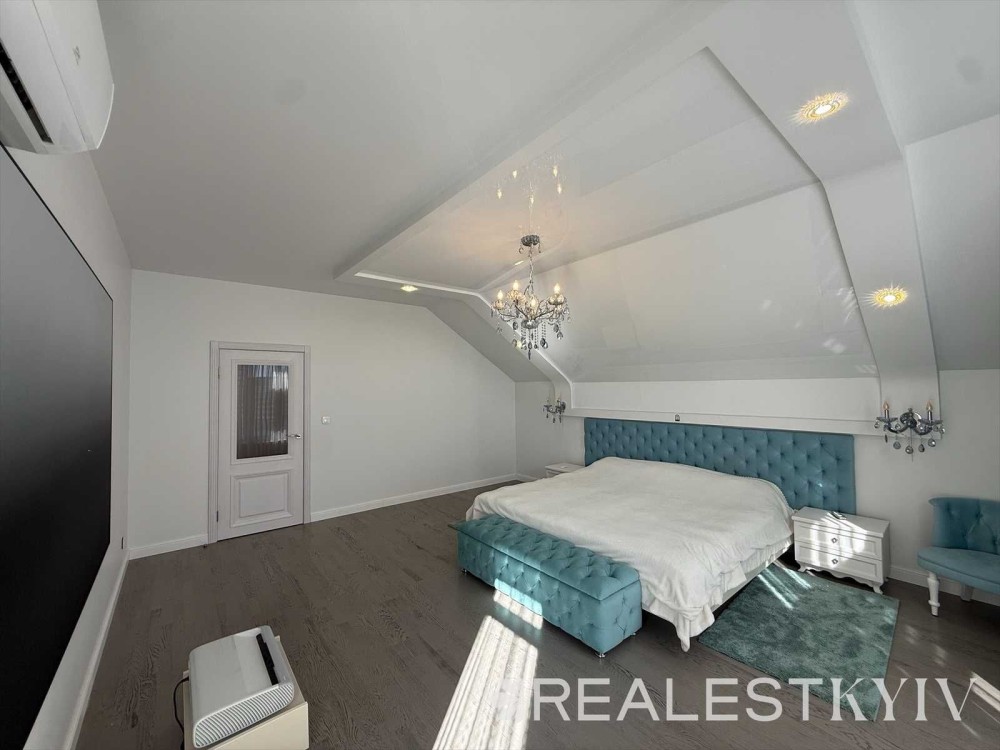 2 поверх — господарська спальня з балконом, 2 спальні (з панорамними вікнами та виходом на балкон), простора ванна кімната, гардеробна кімната, доступ на мансарду.