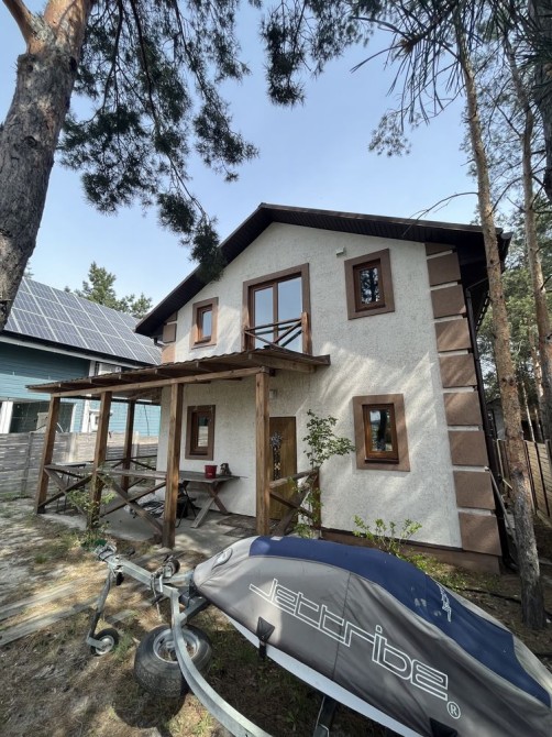 Будинок утеплений розташований на ділянці 5,5 сот посаджені плодові дерева ,сосни поруч пляж .Також є дров'яний камін , пристінного типу для опалення .Прекрасний варіант для вашого життя