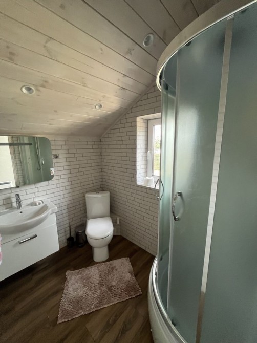 Продам новий будинок 2022 року на Нижньому ДНСі. Два поверхи плюс підвал і холодне горище. Газоблок Д-400 вкритий металочерепицею, обштукатурений і пофарбований, перекритий монолітним залізобетоном. Площа будинку 104 метри. Перший поверх: велика кухня 30 кв.м. з панорамним склінням і виходом на задній двір, передпокій, коридор, перший санвузол. Другий поверх: три житлові кімнати, другий санвузол, сходовий марш. У підвалі котельна, на горище розкладна драбина. Заведена вода зі свердловини 85 метрів, водовідведення в центральну каналізацію. Електроенергія 20 КВт. Змонтована система водяних теплих підлог і радіаторів, електричний котел на 10 КВт. По усьому будинку виконана розводка електрики. Стіни перетерті, металопластикові вікна з теплими скосами, в обох санвузлах розведена і змонтована сантехніка, укладений кахель, душова кабіна на першому і ванна на другому поверсі. На першому поверсі поли викладено плиткою, на другий закуплено і залишиться ламінат, також закуплені і залишаться вуличні світильники та деякі інші матеріали. Залізобетонні сходи на другий поверх викладені керамогранітом. Ділянка 2.5 сотки, обгороджена, відкатні автоматичні ворота. Двір вимощений тротуарною плиткою, змонтовано відведення стічних вод в дренажний колодязь. Залитий фундамент і колони під бесідку і барбекю. З вікон і бесідки відкривається чудовий панорамний краєвид на зелену зону річки Рось. Ціна: 160.000 у.о. Торг. Запрошуємо до співпраці продавців і орендодавців нерухомості. Агенція нерухомості пропонує повний перелік операцій з нерухомістю та супровідною документацією. Купівля-продаж, оренда, обмін житлових та комерційних об’єктів, земельних ділянок. Оцінка майна ринкова та для оподаткування. Технічні паспорти. Узаконення самочинного будівництва, добудови, перепланування. Початок будівництва та ввід в експлуатацію. Землевпорядні роботи: кадастровий номер, приватизація, розподіл, об’єднання, зміна призначення. Кредитування під заставу нерухомості. Безкоштовно приймаємо заявки від продавців та орендодавців. Гарантія конфіденційності. Юридичний супровід. м.Біла Церква Тел.(097)-879-80-99