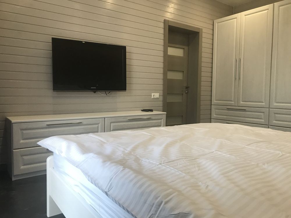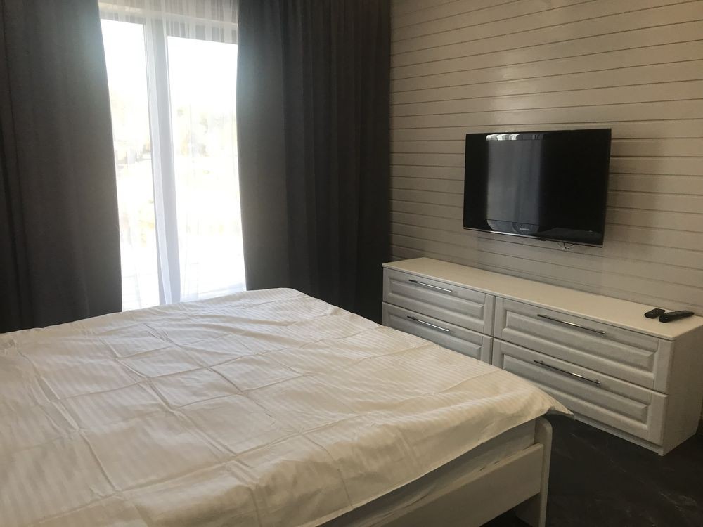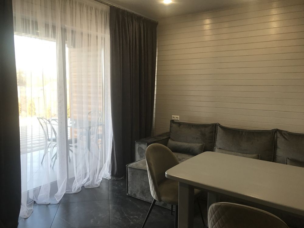 В будинку одна спальня з великим двомісним ліжком, повноцінна кухня- студія, де є розкладний диван на двох людей, сучасна душова та туалетна кімната. Є кондиціонер,два телевізори, холодильник, мікрохвильова піч, електрочайник, електро плита, бойлер та теплі поли. Максимально може розміститися 4 особи!!!