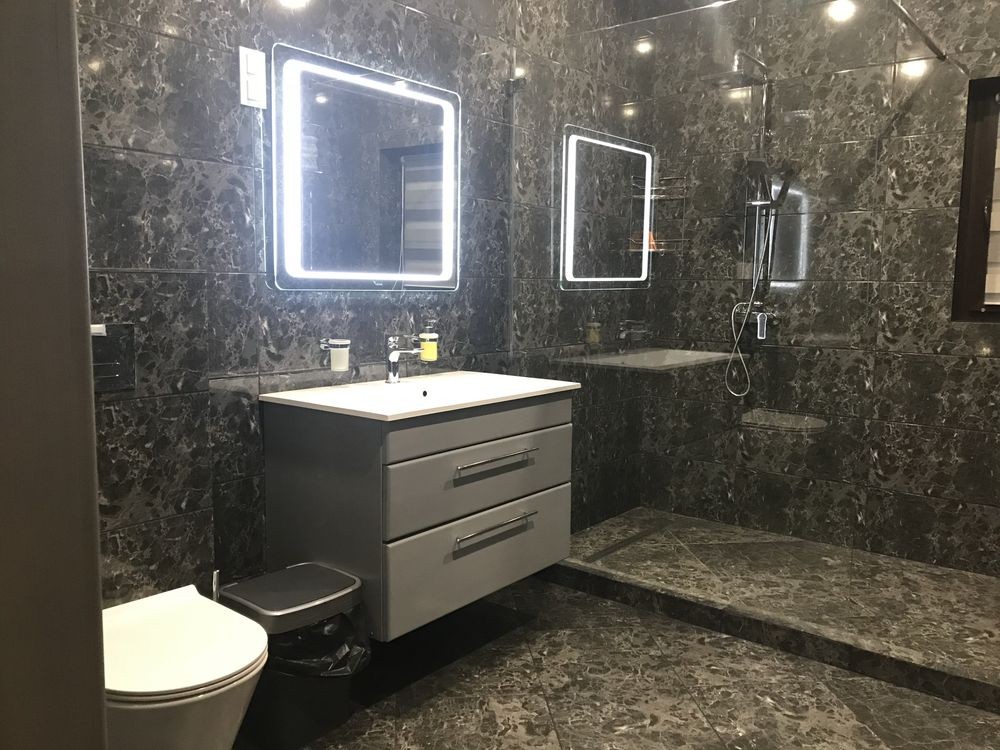 Село Забуччя. 13 км від КП по Житомирській трасі, 19 км від автост.Дачна. 4 км до ЖК Синергія (Ірпінь), 7 км до Бучі. Будинок має 6 кімнат (4 спальні), 2 зали, 4 санвузла, душова. Асфальтований під'Їзд.Будинок під охороною, камери відеоспостереження. Ділянка: Ландшафтний дизайн,басейн, автополив. Відкрита тераса з барбекю. Будинок має мансарду та цокольний поверх. На першому- хол та кухня-студіо, санвузол, туалет та гараж 35 кв.м.. На другому спальня та двоповерховий кабінет, який можно облаштувати під спальню. На третьому кабінет, спальня з санвузлом. Останній поверх- мансарда з санвузлом. На цокольному поверсі велика кімната( під спортзал)де є бігова доріжка, пральна, сауна,душова, техприміщення та 2 кімнати-кладові. На другому поверсі відкрита велика тераса, на третьому балкон. Підлога, керамограніт, плитка, ламінат. Газове опалення, підігрів підлоги на декількох поверхах. камін, сауна. 3 кондіціонера, газовий котел та електроболер. Інтернет оптоволокно.