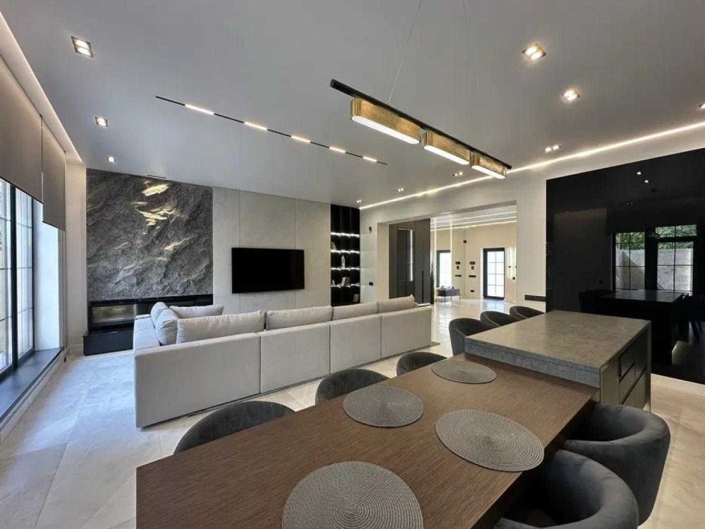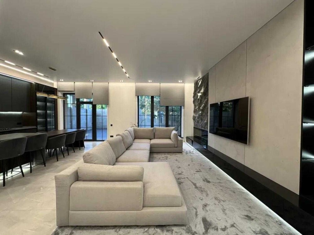 Пропонується до продажу сучасний двоповерховий будинок із дизайнерським ремонтом та власним басейном.