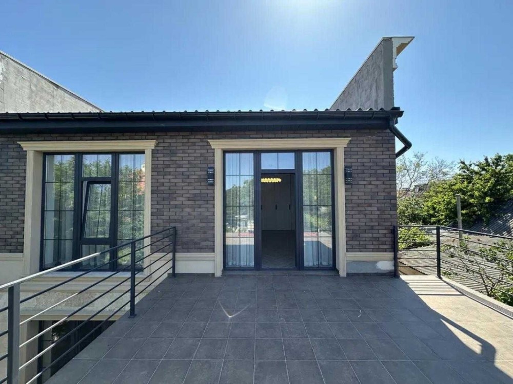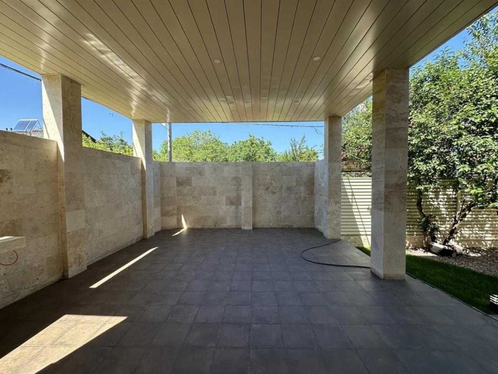 Побудований з червоної цегли, утеплений мінеральною ватою, облицьований натуральним травертином — поєднання естетики, надійності та енергоефективності.