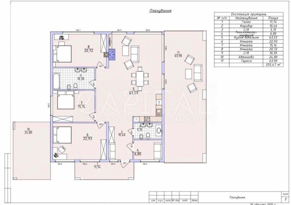 Загальна площа будинку — 255 м² разом з терасою