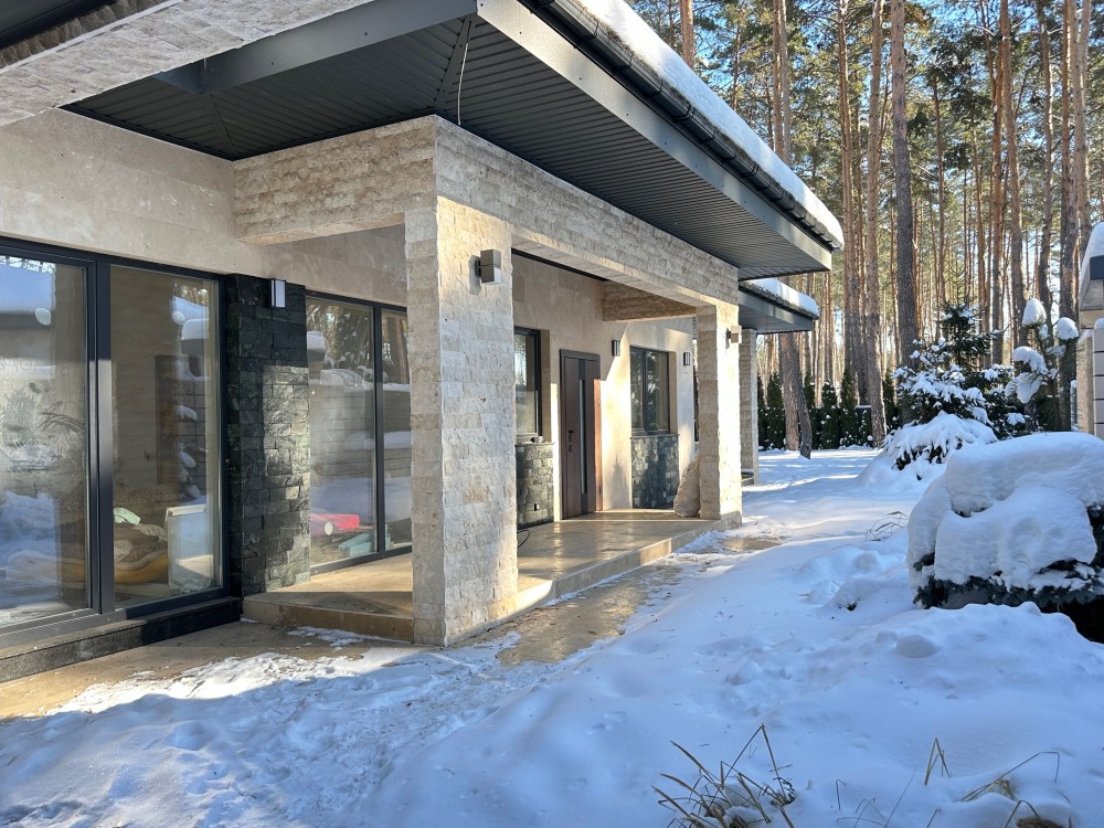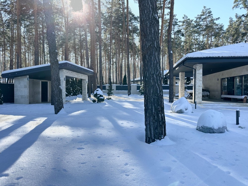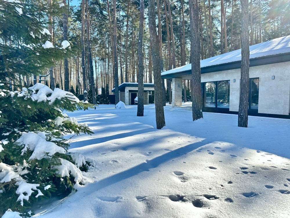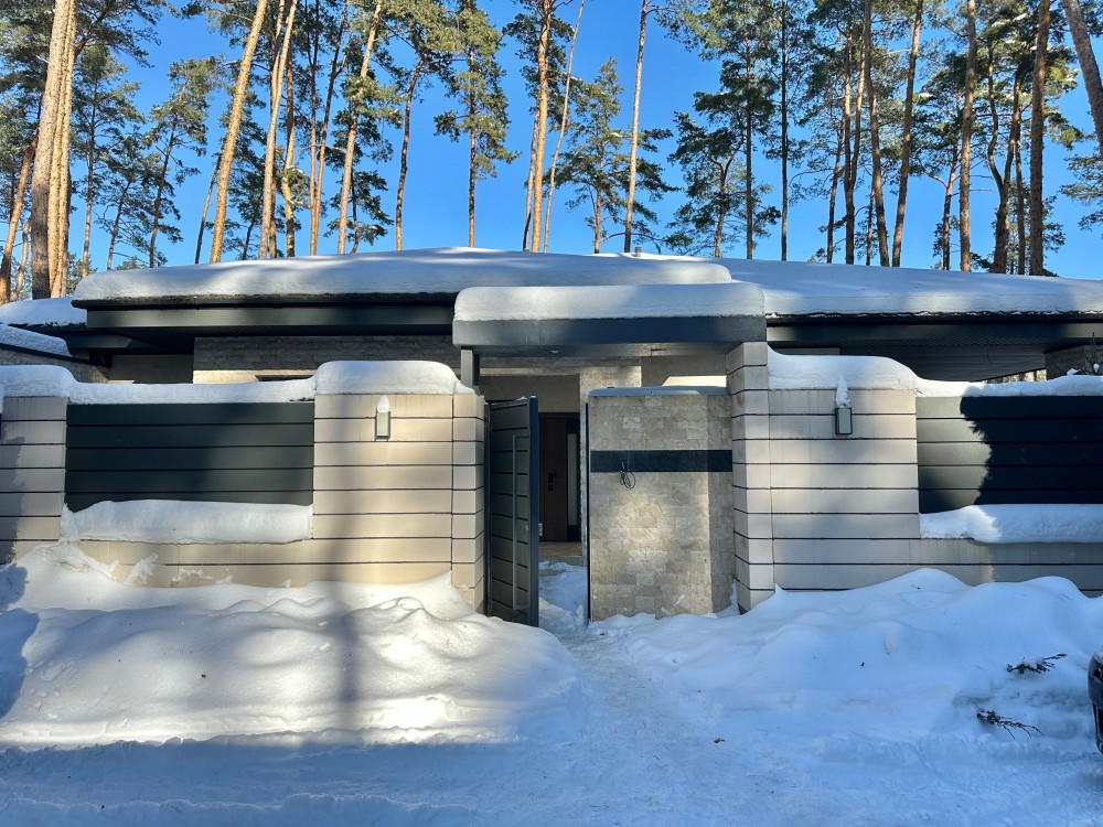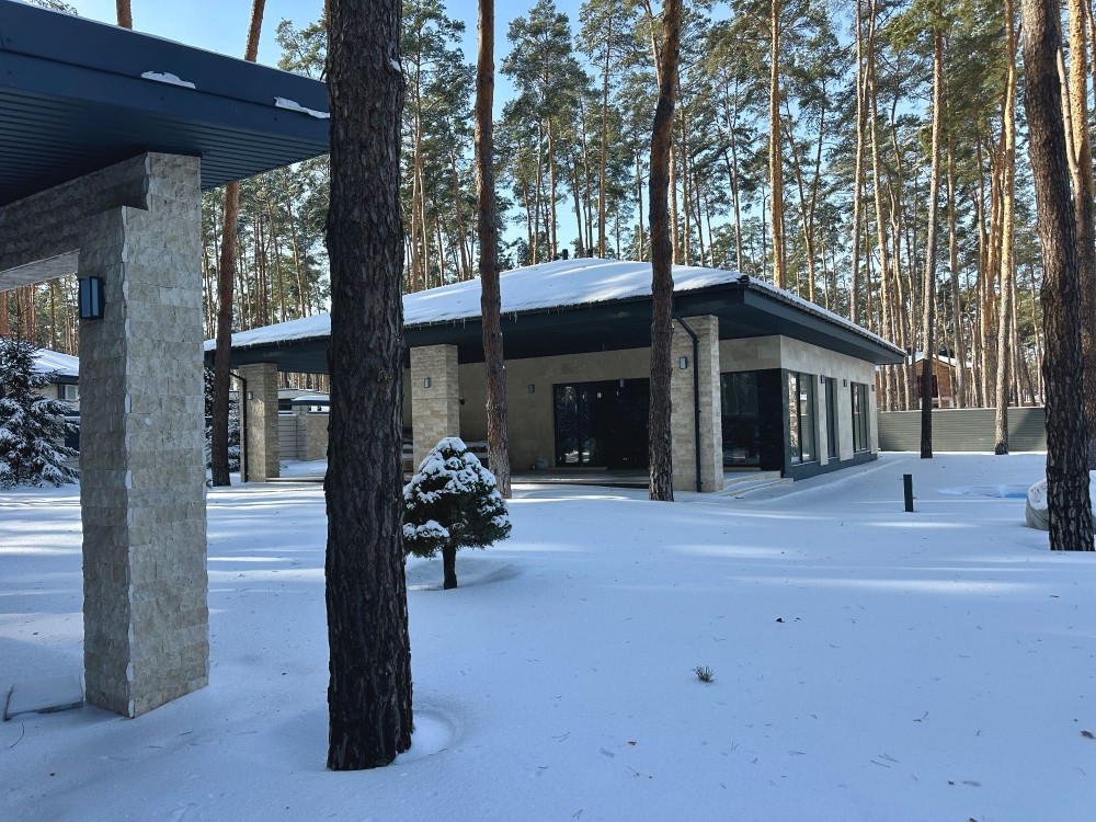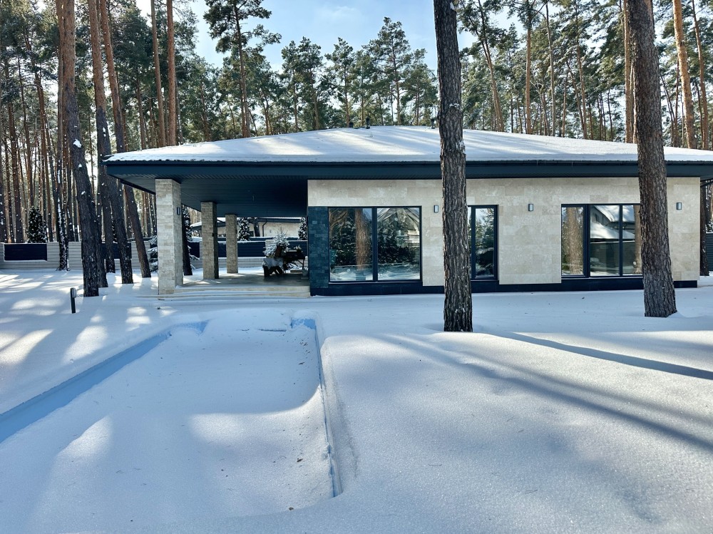 Стильний одноповерховий будинок в оточенні соснового масиву. Тихе, престижне місце з відчуттям заміського комфорту. Асфальтована вулиця.