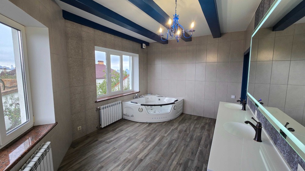 Голосіївський р-н, вул. Козацька 84. Будинок 200 кв.м., 2 поверхи. Перший поверх: кухня-вітальня з каміном з виходом на терасу, спальна кімната з с/в, ванна кімната + пральня/сушка. Другий поверх: 2 спальні кімнати, одна загальна (прохідна) кімнати і велика ванна кімната. Комплектація меблями оговорюється при цьому ціна буде збільшена. Ділянка 4 сотки, паркінг на 4 авто. В будинку газ, інтернет (оптиковолокно), генератор.