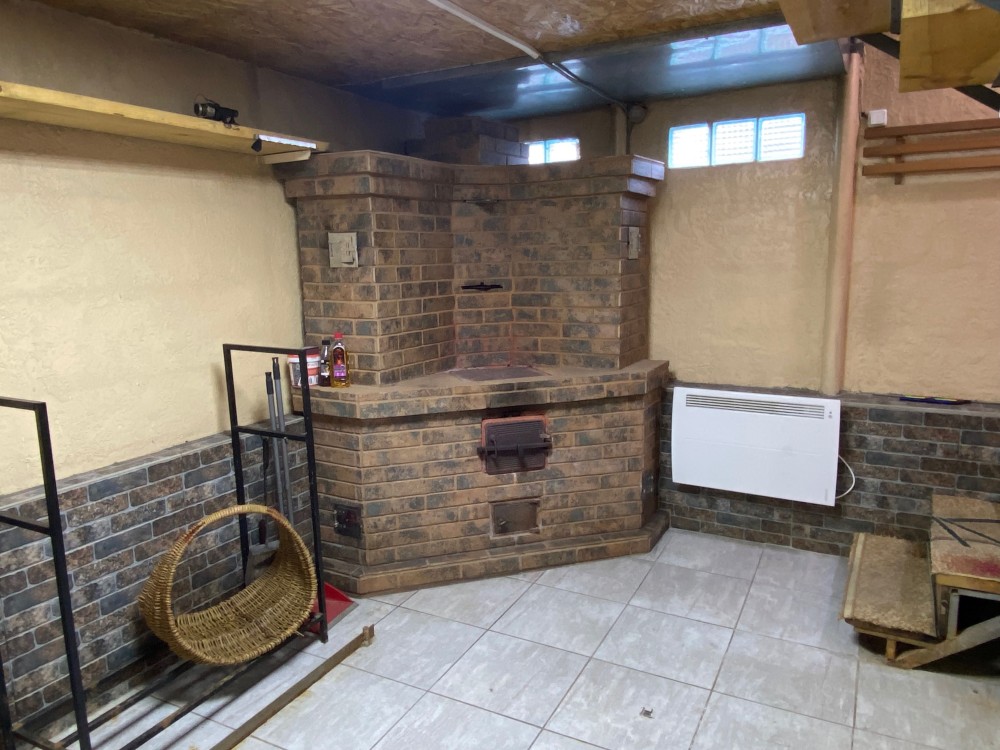 1-й пов. туалет; ванна кімната; кухня та камін, яким опалюється будинок.