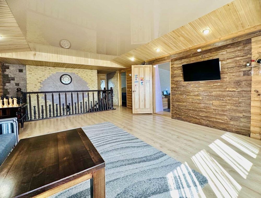 На 1 поверсі : кухня- вітальня, баня, душова