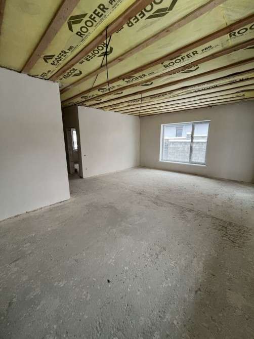 Зроблена гіпсова штукатурка стін та розведена електрика по точкам, заведені комунікації.