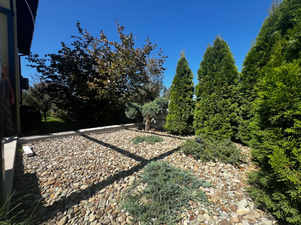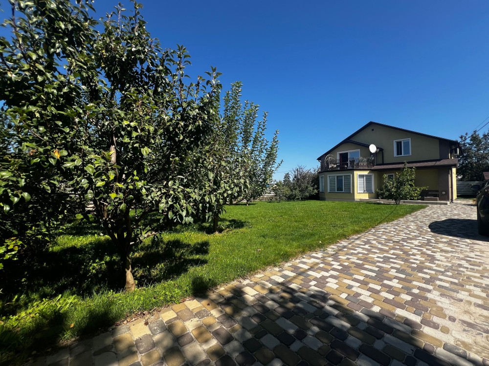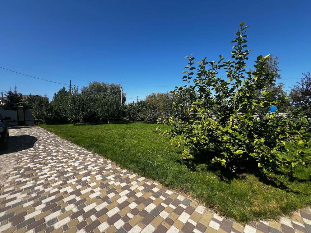 Ділянка 7.5 сотих, правильної форми, автоматичні ворота і відеодомофон. На ділянці додатково садові дерева, зона мангал, ландшафтний дизайн, господарче приміщення (сарай). Парковочна зона без навісу під автомобілі.