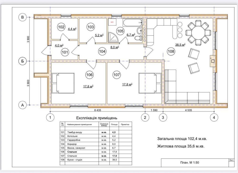 Площа: 102 м²