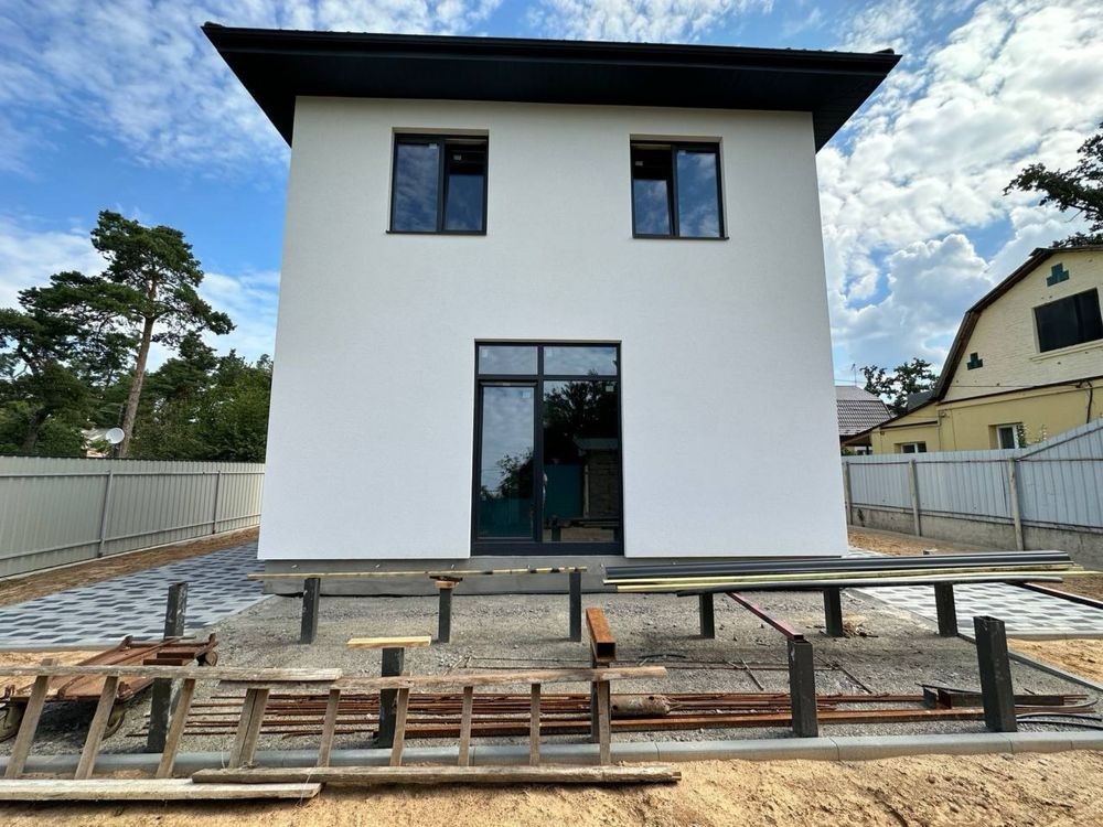 Продам новий будинок 2022 року на Нижньому ДНСі. Два поверхи плюс підвал і холодне горище. Газоблок Д-400 вкритий металочерепицею, обштукатурений і пофарбований, перекритий монолітним залізобетоном. Площа будинку 104 метри. Перший поверх: велика кухня 30 кв.м. з панорамним склінням і виходом на задній двір, передпокій, коридор, перший санвузол. Другий поверх: три житлові кімнати, другий санвузол, сходовий марш. У підвалі котельна, на горище розкладна драбина. Заведена вода зі свердловини 85 метрів, водовідведення в центральну каналізацію. Електроенергія 20 КВт. Змонтована система водяних теплих підлог і радіаторів, електричний котел на 10 КВт. По усьому будинку виконана розводка електрики. Стіни перетерті, металопластикові вікна з теплими скосами, в обох санвузлах розведена і змонтована сантехніка, укладений кахель, душова кабіна на першому і ванна на другому поверсі. На першому поверсі поли викладено плиткою, на другий закуплено і залишиться ламінат, також закуплені і залишаться вуличні світильники та деякі інші матеріали. Залізобетонні сходи на другий поверх викладені керамогранітом. Ділянка 2.5 сотки, обгороджена, відкатні автоматичні ворота. Двір вимощений тротуарною плиткою, змонтовано відведення стічних вод в дренажний колодязь. Залитий фундамент і колони під бесідку і барбекю. З вікон і бесідки відкривається чудовий панорамний краєвид на зелену зону річки Рось. Ціна: 160.000 у.о. Торг. Запрошуємо до співпраці продавців і орендодавців нерухомості. Агенція нерухомості пропонує повний перелік операцій з нерухомістю та супровідною документацією. Купівля-продаж, оренда, обмін житлових та комерційних об’єктів, земельних ділянок. Оцінка майна ринкова та для оподаткування. Технічні паспорти. Узаконення самочинного будівництва, добудови, перепланування. Початок будівництва та ввід в експлуатацію. Землевпорядні роботи: кадастровий номер, приватизація, розподіл, об’єднання, зміна призначення. Кредитування під заставу нерухомості. Безкоштовно приймаємо заявки від продавців та орендодавців. Гарантія конфіденційності. Юридичний супровід. м.Біла Церква Тел.(097)-879-80-99