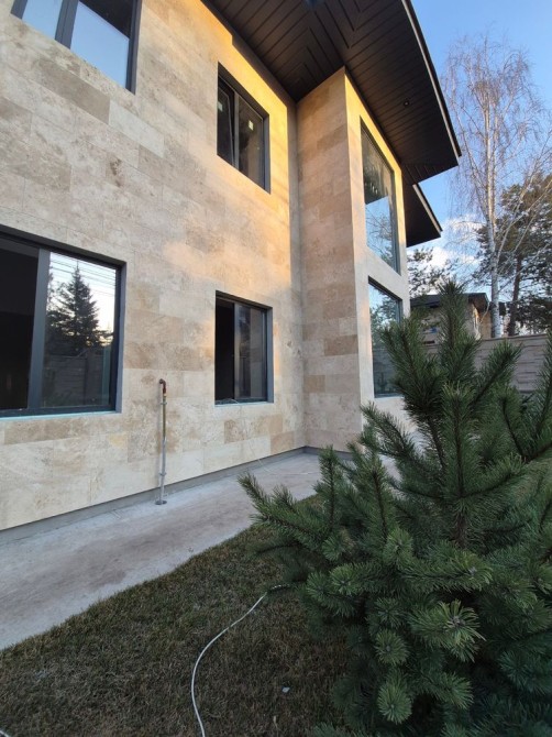 Фасад: травертин.