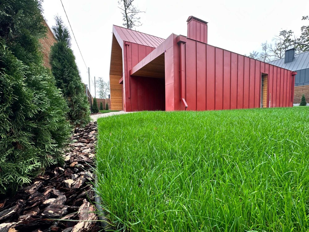 Фальцевий дах та облицювання стін підтримують високий клас комплексу в цілому та забезпечують надійність експлуатації кожної будівлі. Такий тип обробки гарантує максимальну енергоефективність, довговічність, захист від опадів. Фальц - це естетика і комфорт вашого будинку на десятиліття.