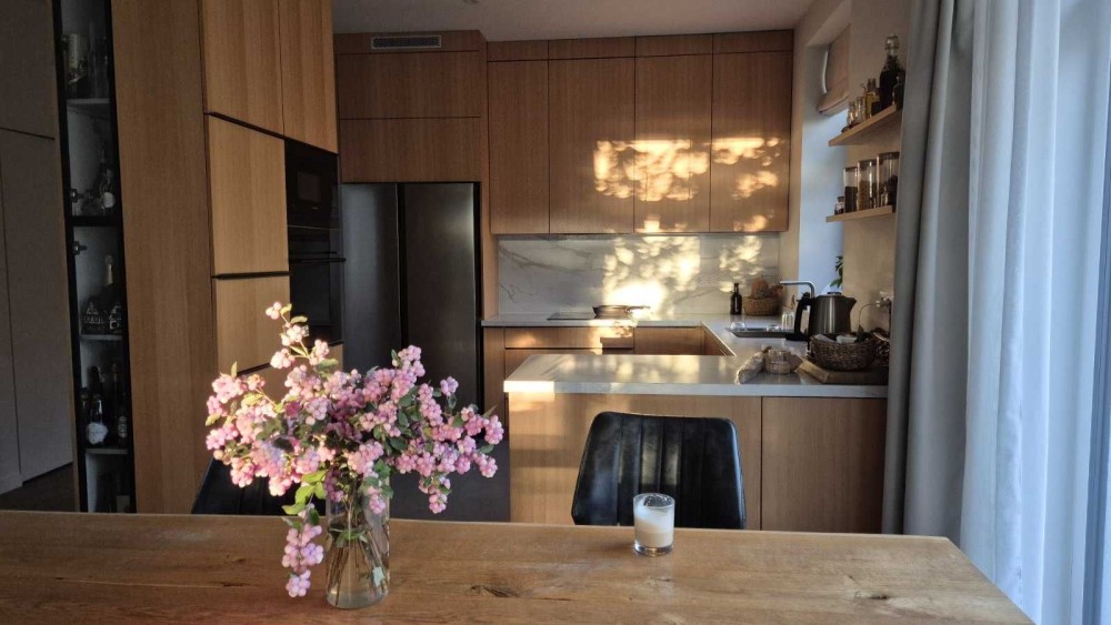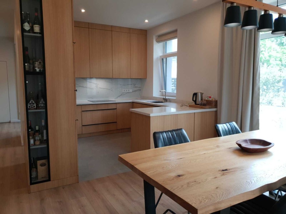 Кухня з натурального дубового шпону + кварцитова стільниця