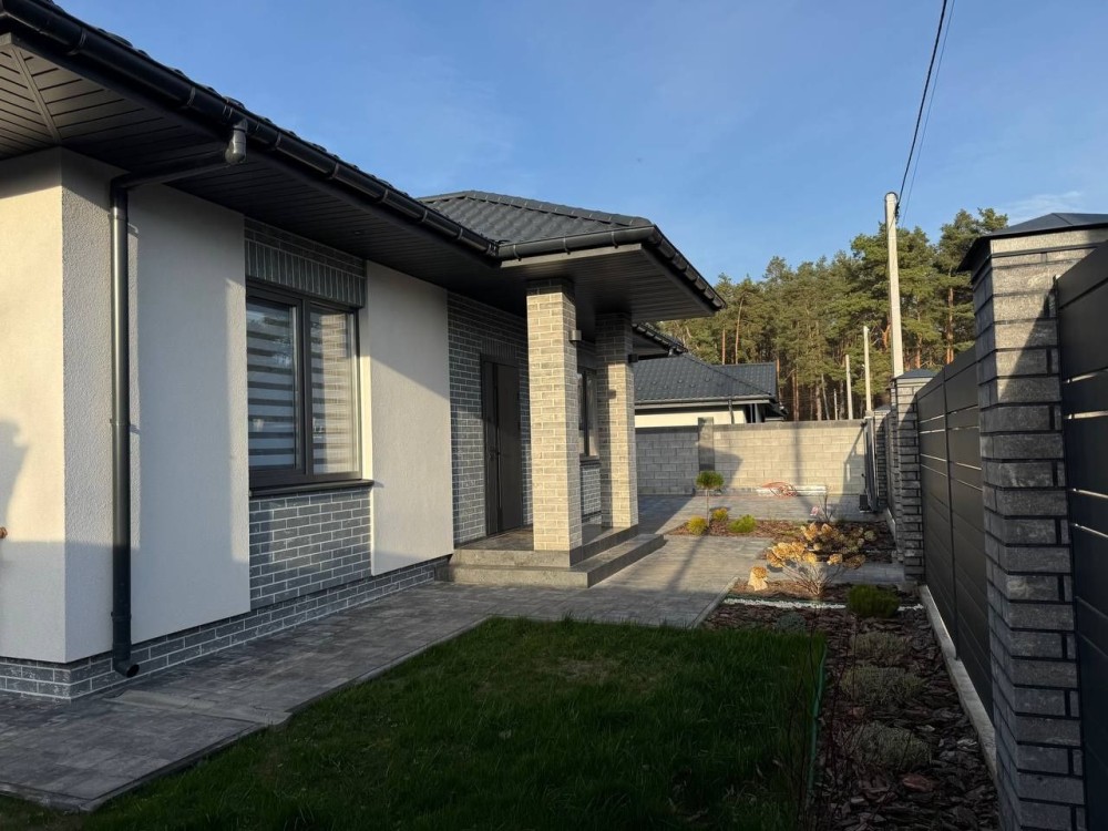 Сучасний одноповерховий будинок з 3кімнатами 2 санвузлами,кухня гостьова з вихідом на терасу.Гарний стильний ремонт ,встановлена кухня з технікою,зона відпочинку з розкладним диваном,система теплої підлоги(водяна),світло ,скважина ,септик,газ.Встановлено два котли на опалення газовий та електричний Ділянка з ландшафтом 5сот.,асфальтований підїзд,напроти заповідна лісова зона,зручний виїзд в Ірпінь Бучу,Київ. Поспішайте на перегляд ,хто шукає будинок якісний і комфортний.