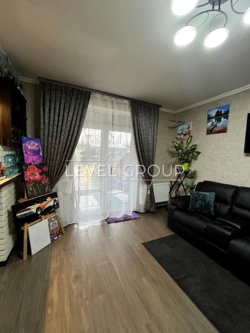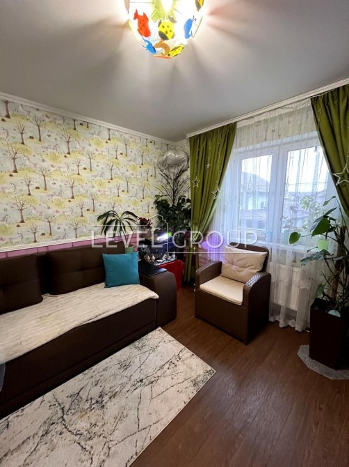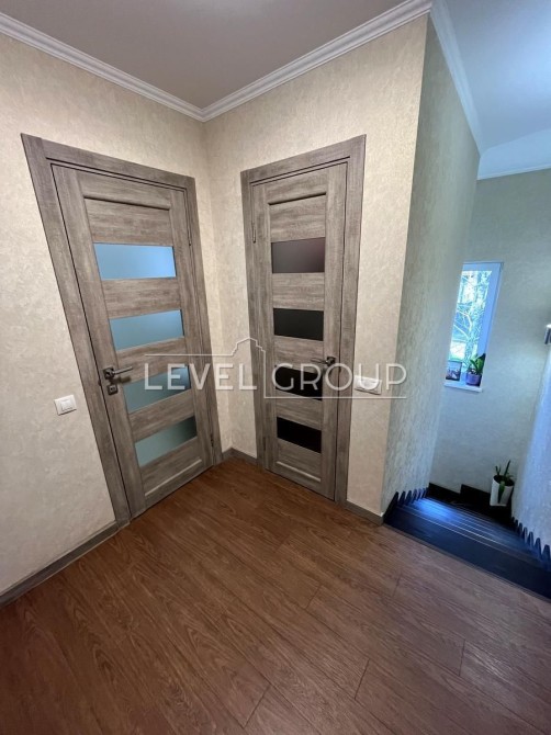 Планування: Простора кухня-вітальня з каміном і виходом на терасу, технічна кімната з котлом та екософт системою, кабінет або гостьова кімнати, санвузол, на другому поверсі 3 кімнати, другий санвузол з ванною-джакузі, кладова. Є також вихід на третій поверх де при бажанні можна зробити ще одну додаткову кімнату.