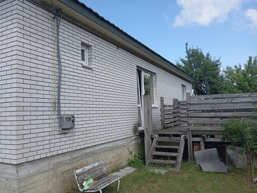 Будинок побудований з піноблоку утеплений мінватою та облицьований цеглою. Дах матова металочерепиця. З кухні вихід на терасу. В дворі колодязь, погріб, дерев'яний сарайчик для інвентаря. Земельна ділянка — 5.6 соток.